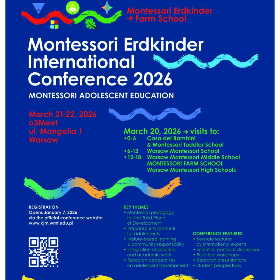 Garozas pamatskola ar prieku aicina Jūs piedalīties Montessori Erdkinder starptautiskajā konferencē, kas notiks 2026. gada 21. un 22. martā Erasmus+ projekta KA220-SCH-06406257 ietvaros. Konference tiks organizēta klātienē, vienlaikus piedāvājot arī iespēju reģistrēties dalībai tiešsaistē (https://kjm.wmf.edu.pl/registration/),lai nodrošinātu pieejamību plašākai starptautiskai auditorijai.