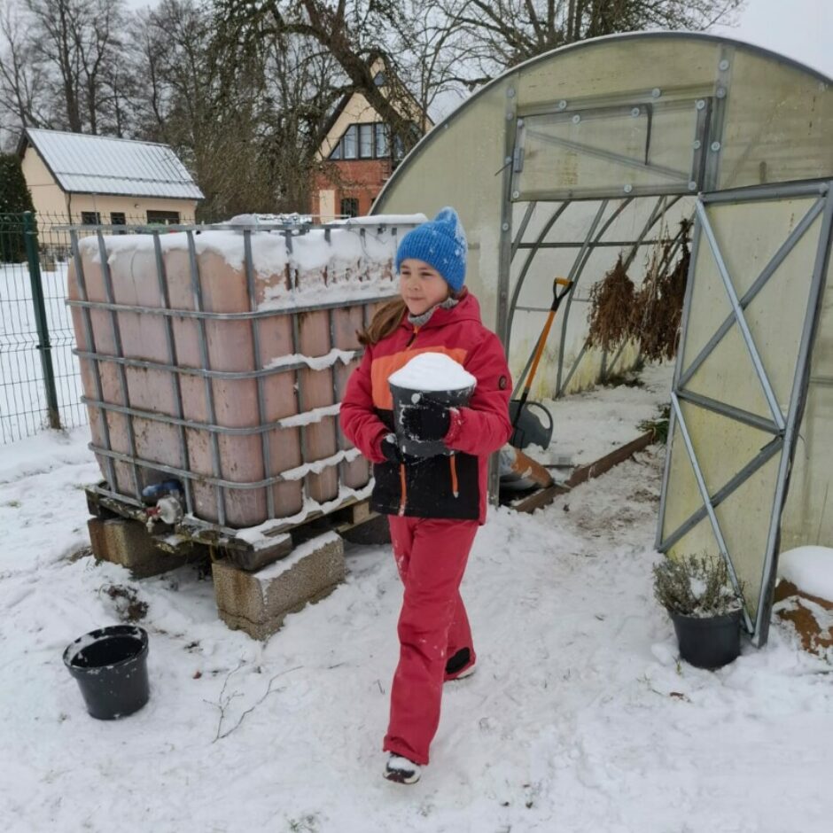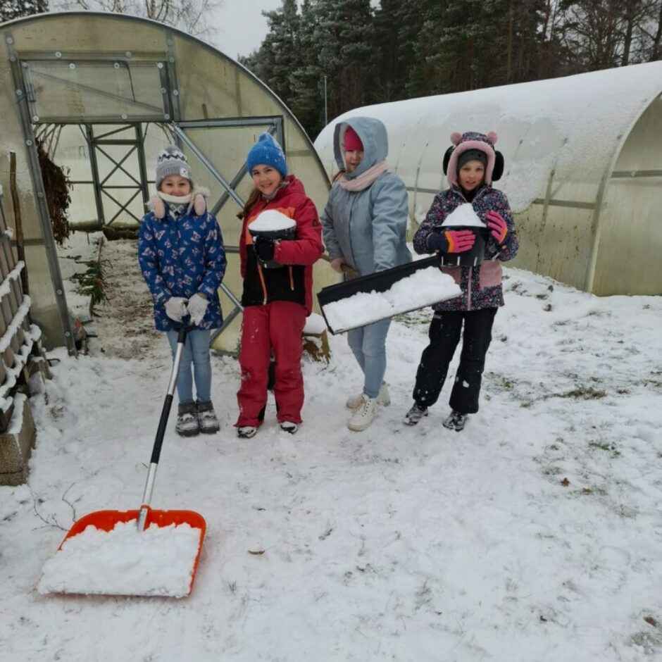 Tā kā sniegs, tomēr mūs nedaudz priecēja, skolēni kopā ar skolotāju Evu organizēja sniega talkas, kurās bēra sniegu siltumnīcās, lai nodrošinātu augsni ar mikroelementiem un mitrumu. Talka neizpalika ar pikošanos un sniega eņģeļu veidošanas priekiem!