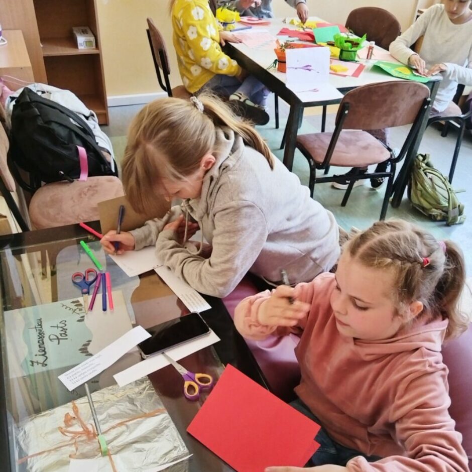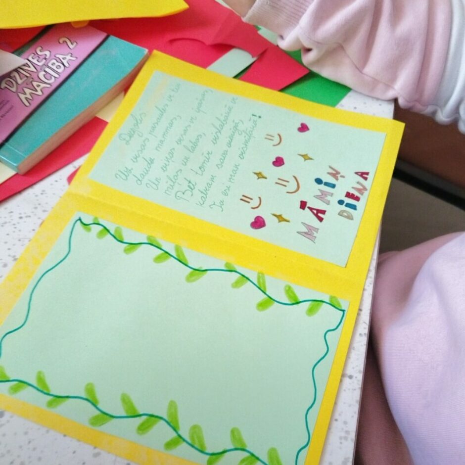 12.maijā Garozas pamatskolas skolēni gatavoja apsveikuma kartiņas Mātes dienā.