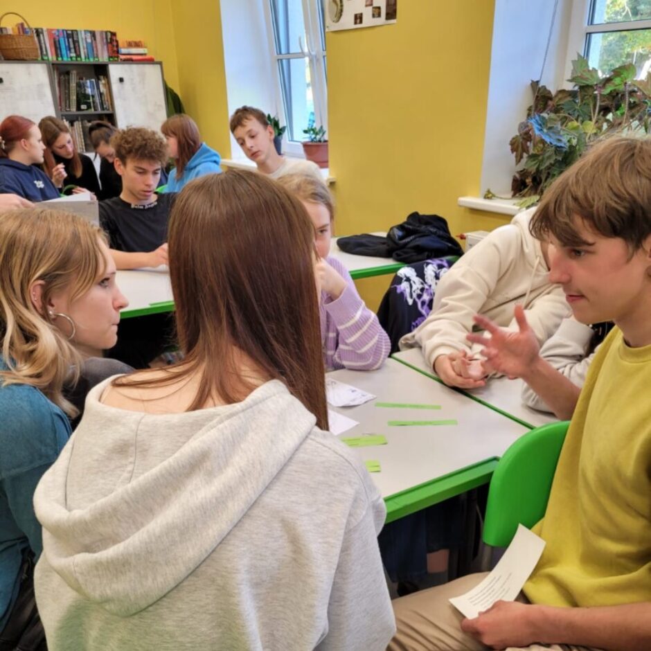 Savukārt, 7.-9. klašu izglītojamie, tiekoties ar LLKC Jelgavas biroja vadītāju Initu Krivašonoku, grupās izstrādāja biznesa idejas un diskutēja par “zaļās” karjeras iespējām lauku teritorijās.