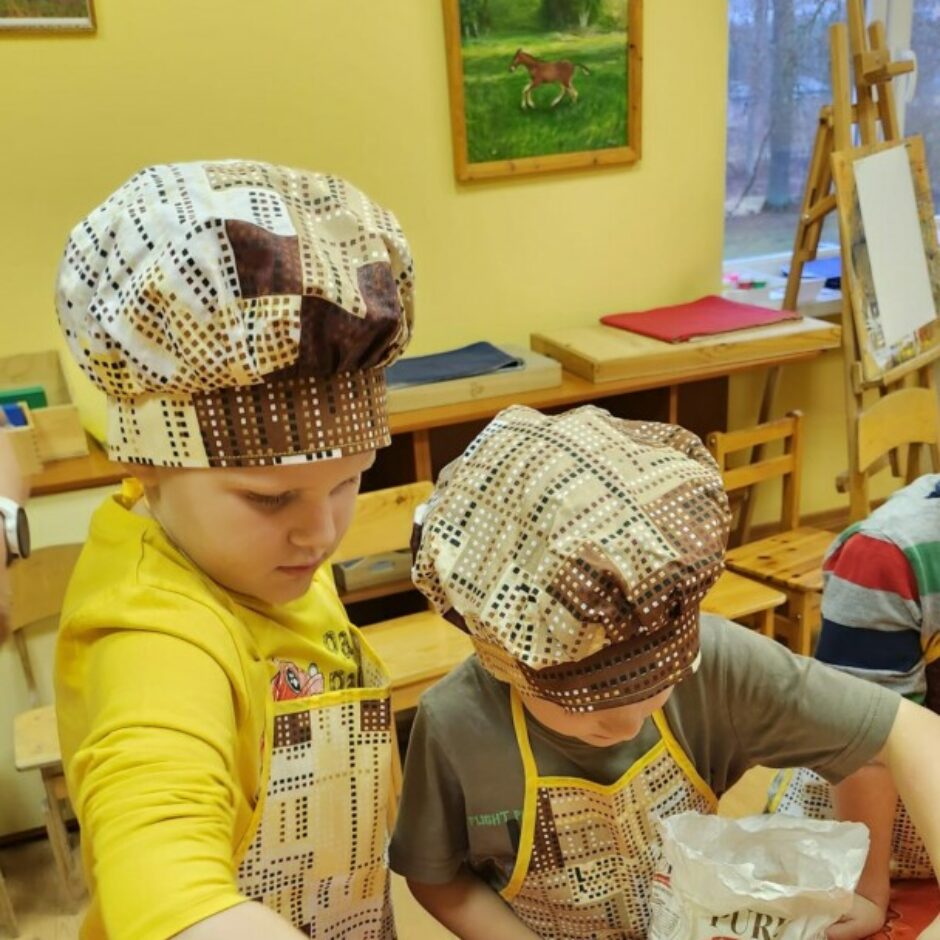Grupu “Pūcītes” un “Vāverītes” bērni apguva zināšanas par nosacītiem mēriem, vafeļu mīklas gatavošanai nepieciešamajiem pārtikas produktiem un mīklas gatavošanas tehnoloģiju. Ar interesi bērni iepazina darbu ar elektrisko vafeļu pannu, iepriekš kopā ar skolotāju pārrunājot elektrodrošību.