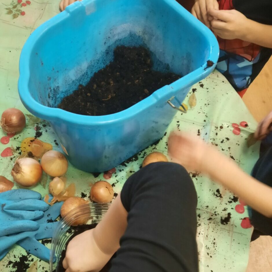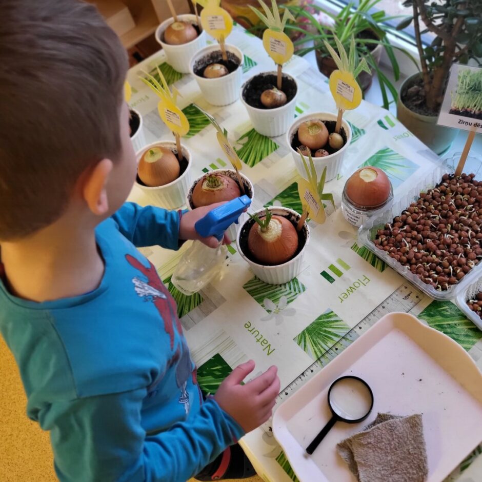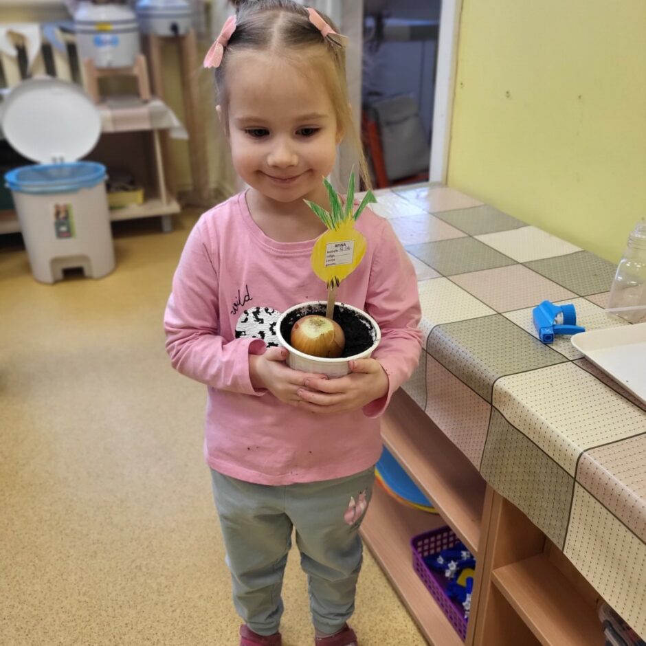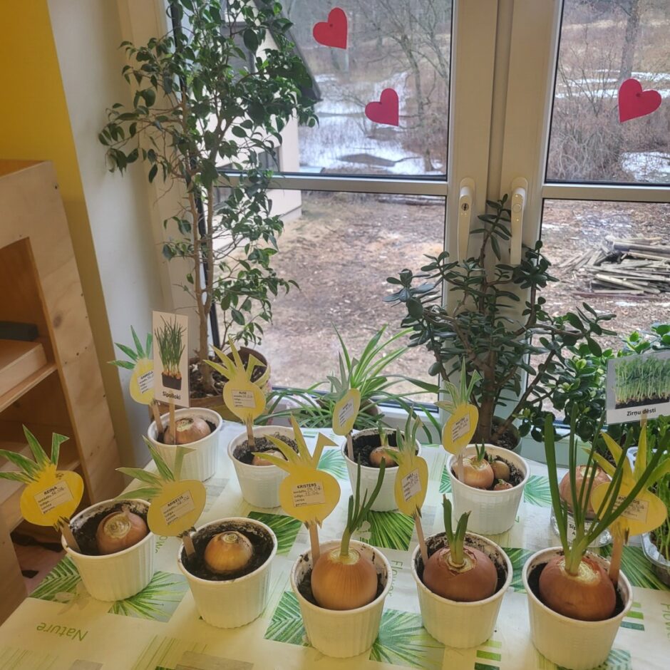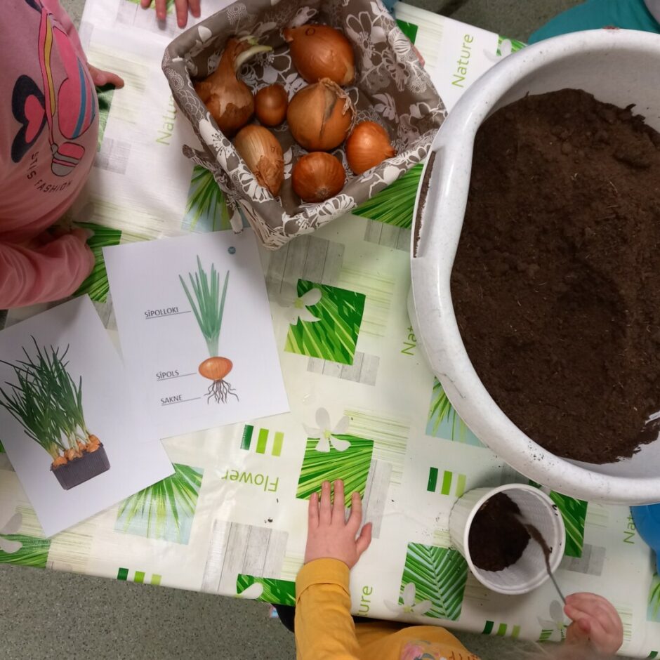 Pirmsskolēni februārī, kā katru gadu, stādīja sīpolus, lai pēc kāda laika varētu brokastīs un pusdienās lietot izaugušos sīpollokus. Sīpoliem dīgstot, grupās notika arī pētnieciskais darbs – vērojumi ar lupu, sīpolloku regulāra mērīšana un salīdzināšana. Lai varētu izpētīt sīpola saknes, atsevišķi sīpoli tika diedzēti traukā ar ūdeni. Pakāpeniski izaugušie sīpolloki tika griezti un tie lieliski papildināja bērnu ēdienkarti.
