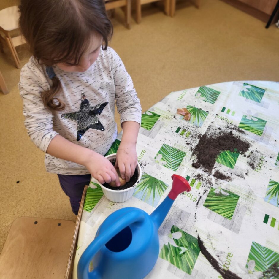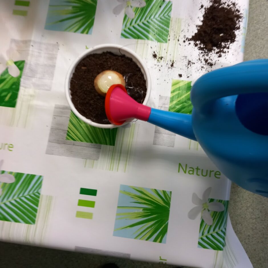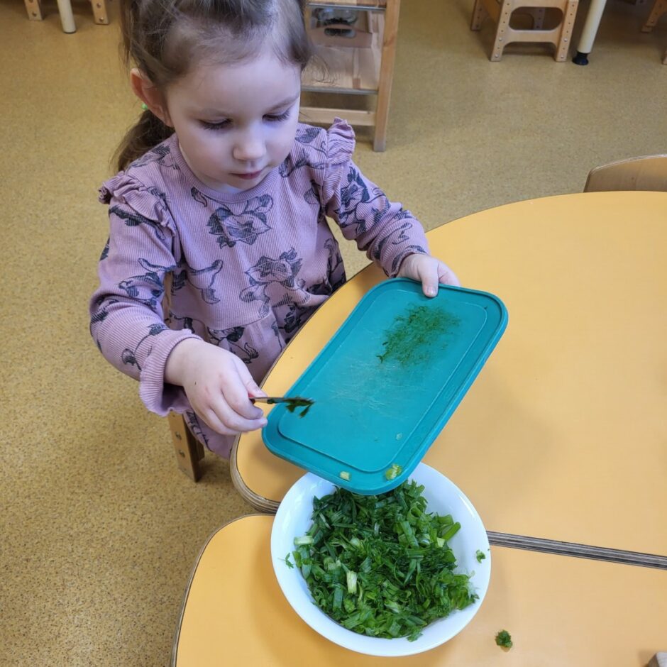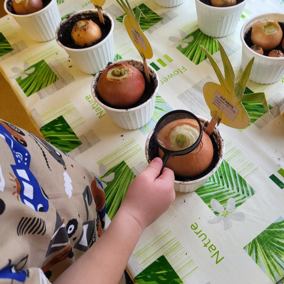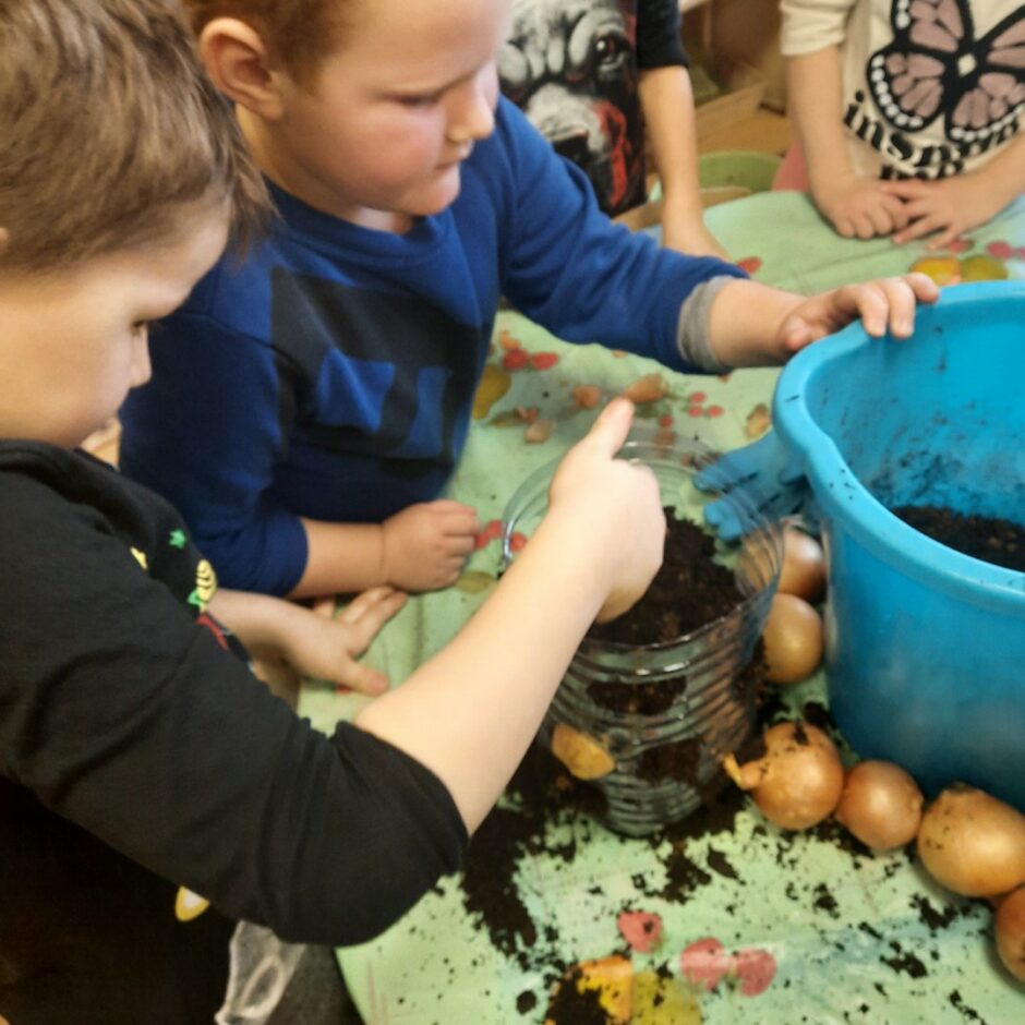 Pirmsskolēni februārī, kā katru gadu, stādīja sīpolus, lai pēc kāda laika varētu brokastīs un pusdienās lietot izaugušos sīpollokus. Sīpoliem dīgstot, grupās notika arī pētnieciskais darbs – vērojumi ar lupu, sīpolloku regulāra mērīšana un salīdzināšana. Lai varētu izpētīt sīpola saknes, atsevišķi sīpoli tika diedzēti traukā ar ūdeni. Pakāpeniski izaugušie sīpolloki tika griezti un tie lieliski papildināja bērnu ēdienkarti.