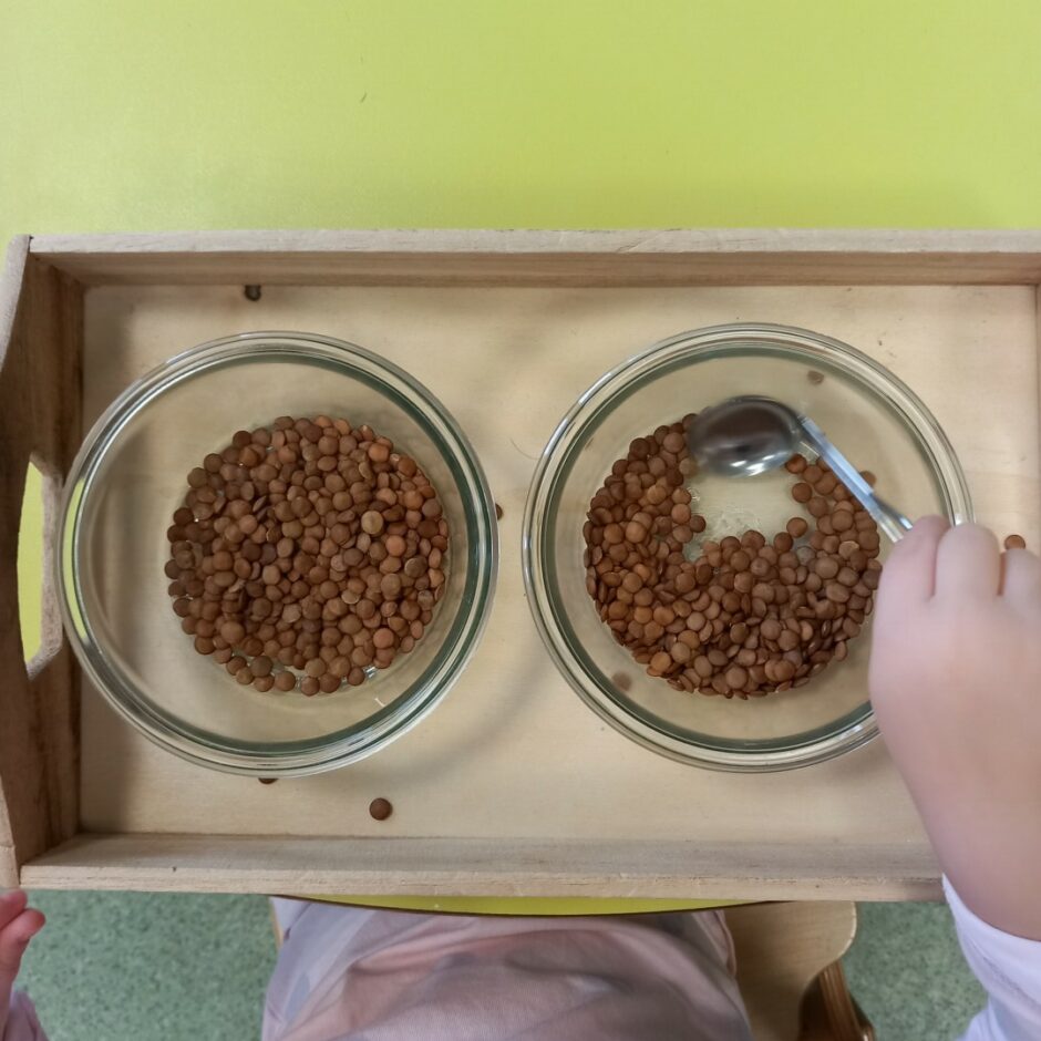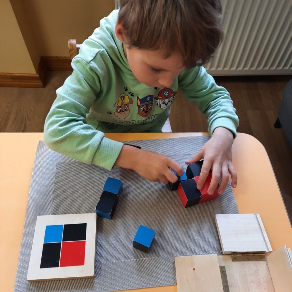 Ikdienā visa mācību gada garumā daudz laika bērni pirmsskolā pavada darbojoties ar Montesori materiāliem, kas atrodas īpaši iekārtotā vidē. Katram bērnam tiek dota iespēja darboties ar viņa zināšanām un prasmēm atbilstošiem materiāliem, ievērojot to secību. Grupās tiek nodrošināta individuāla pieeja un atbalsts katram bērnam. Bērna izaugsmei regulāri tiek piedāvāti sarežģītāki materiāli.