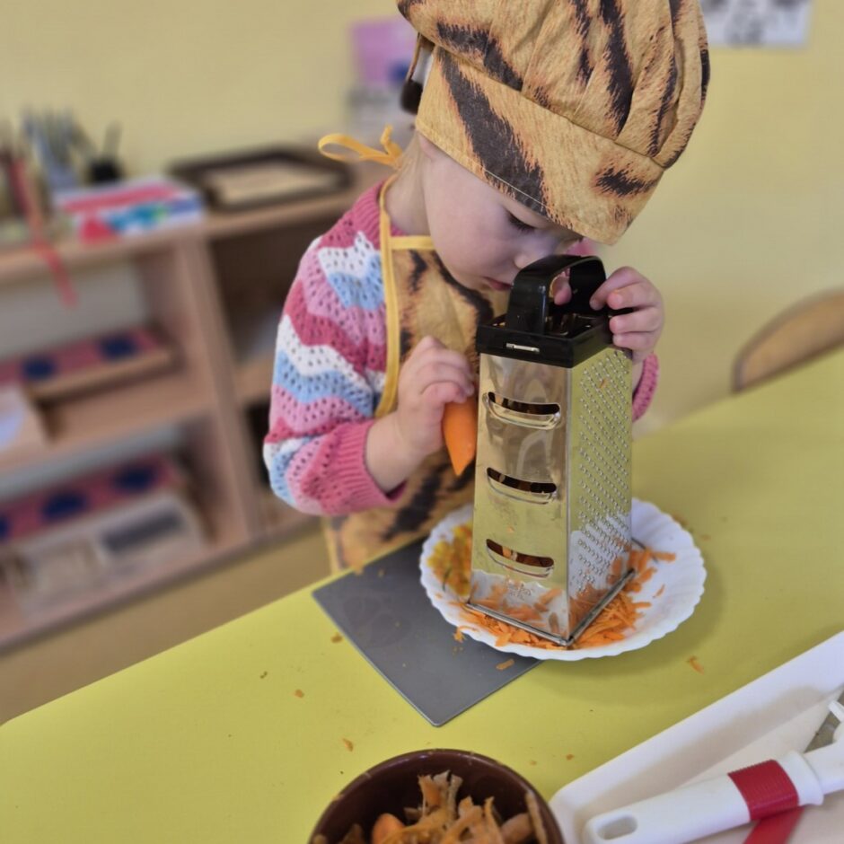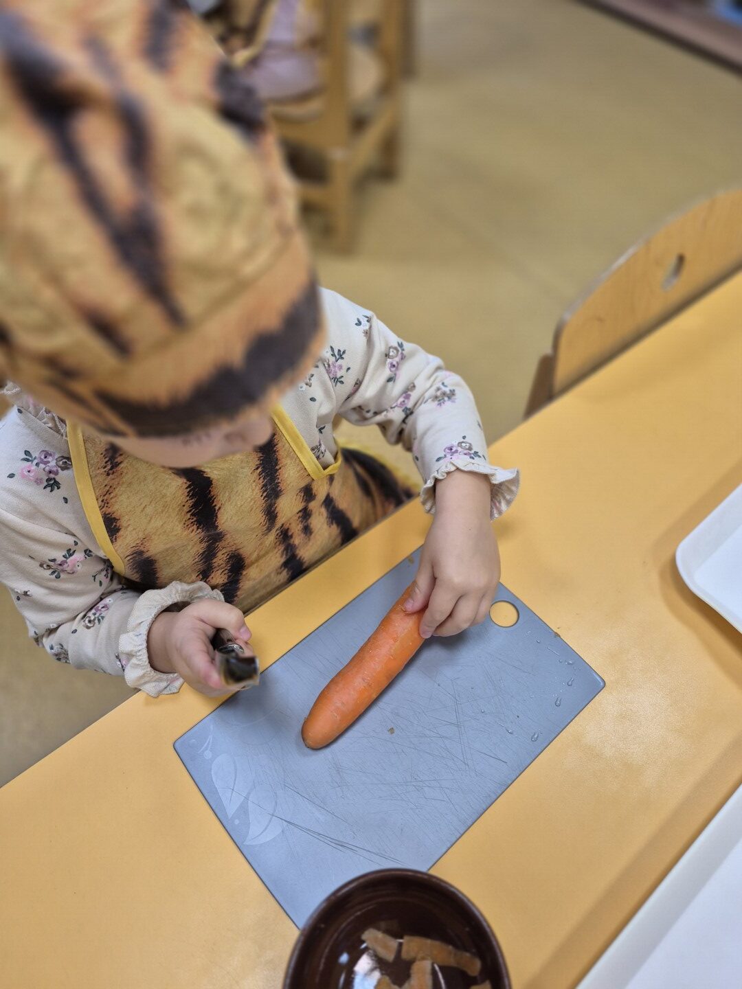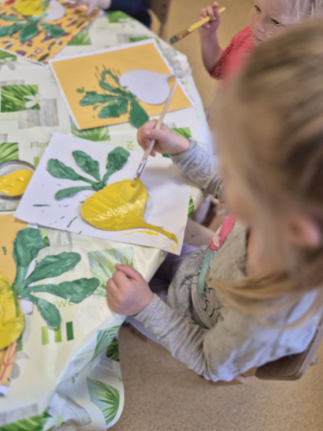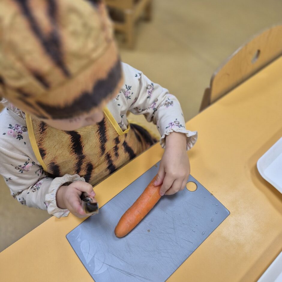 Grupu “Taurenīši” un “Ežuki” bērni izzināja dažādus dārzeņus un augļus. Apguva praktiskās dzīves iemaņas – mizoja, rīvēja, grieza un spieda sulu. Paralēli tam mācījās atpazīt dārzeņus un augļus, nosaukt tos, kā arī salīdzināt pēc krāsas, lieluma un formas. Arī radošajos darbos tika atspoguļoti augļi un dārzeņi.