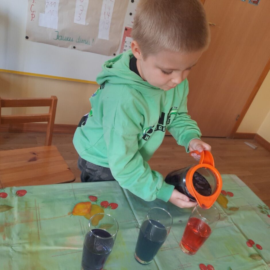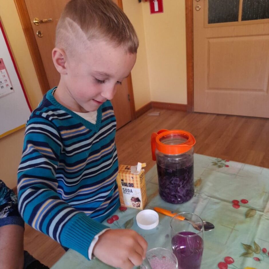 Runājot par dārzeņiem, bērni veica arī vairākus eksperimentus ar tiem. Lielu sajūsmu izraisīja eksperiments ar sarkano kāpostu, kur dažādu vielu iedarbības rezultātā šķīdumam mainījās krāsas. Paralēli kartupeļu pankūku gatavošanai bērni mēģināja no kartupeļu sulas iegūt cieti. Arī šis eksperiments izdevās un deva iespēju izpētīt pašu iegūto cieti un tai raksturīgās īpašības.