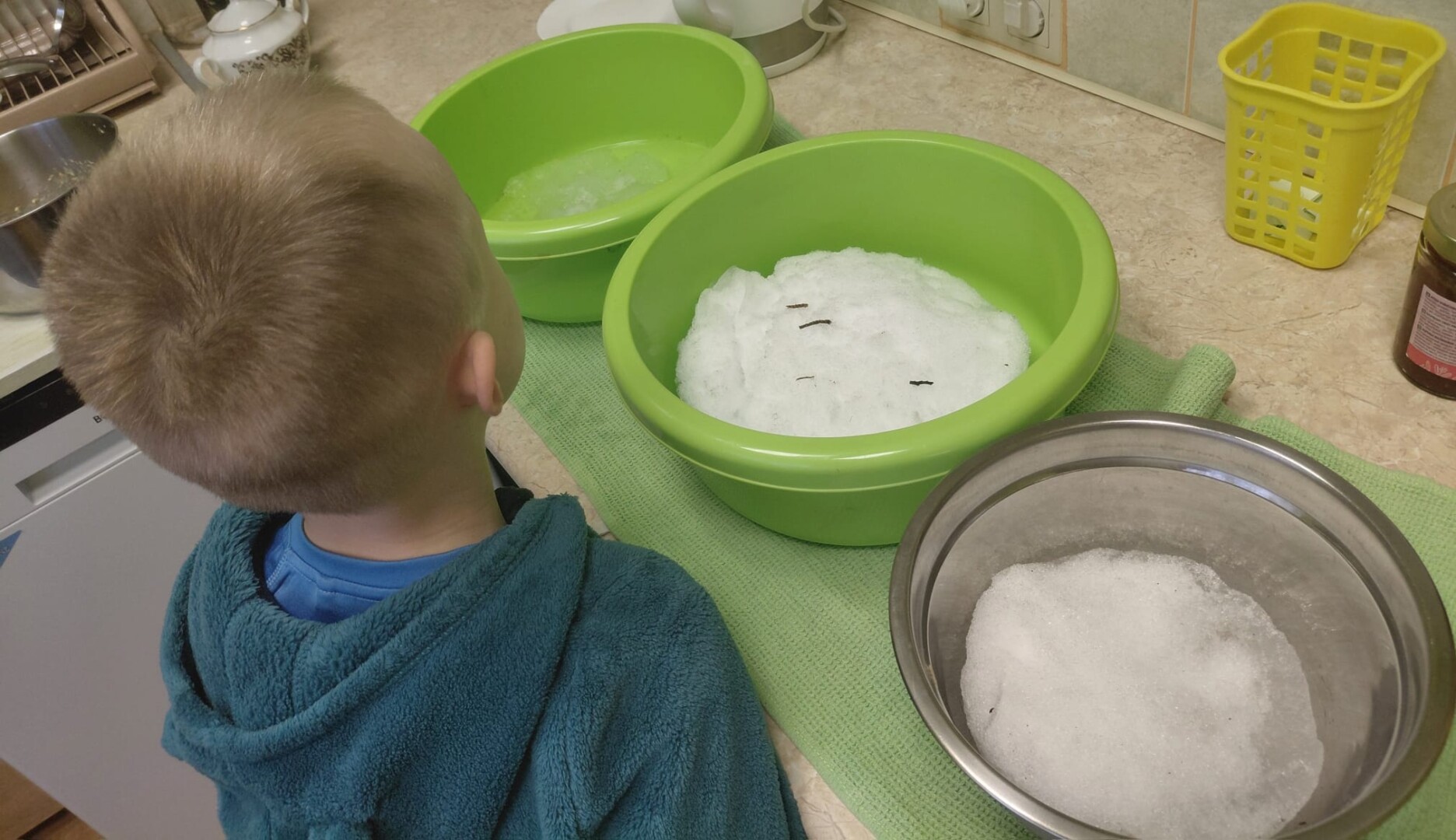 Lai labāk izprastu un izzinātu ūdens un sniega īpašības, grupas “Pūcītes” bērni eksperimentēja gan ar ūdeni, gan sniegu. Reizē mācoties izteikt savu viedokli, attīstīt novērošanas prasmes un izdarīt savus secinājumus. Liels prieks par katru jaunu atklājumu!