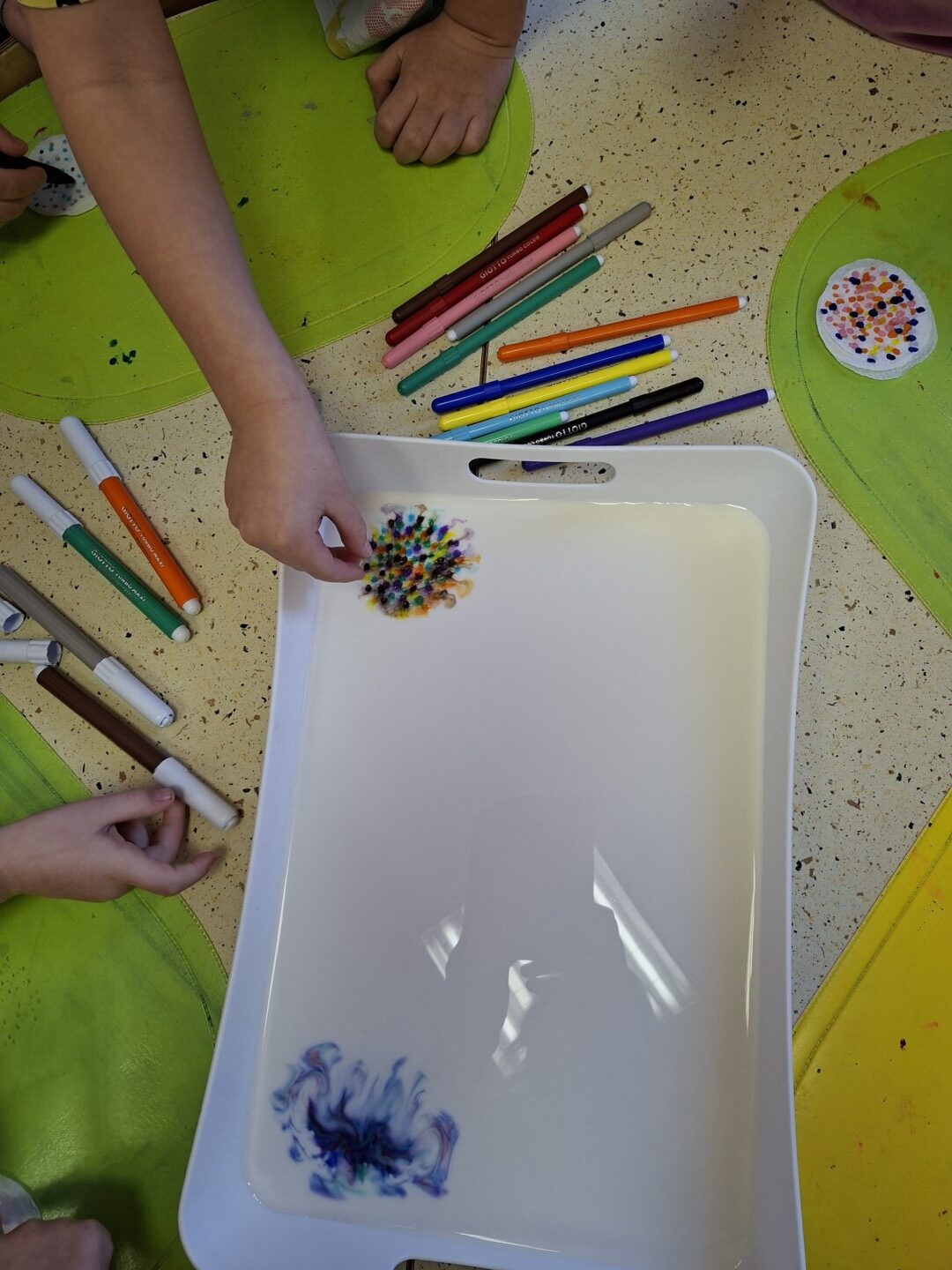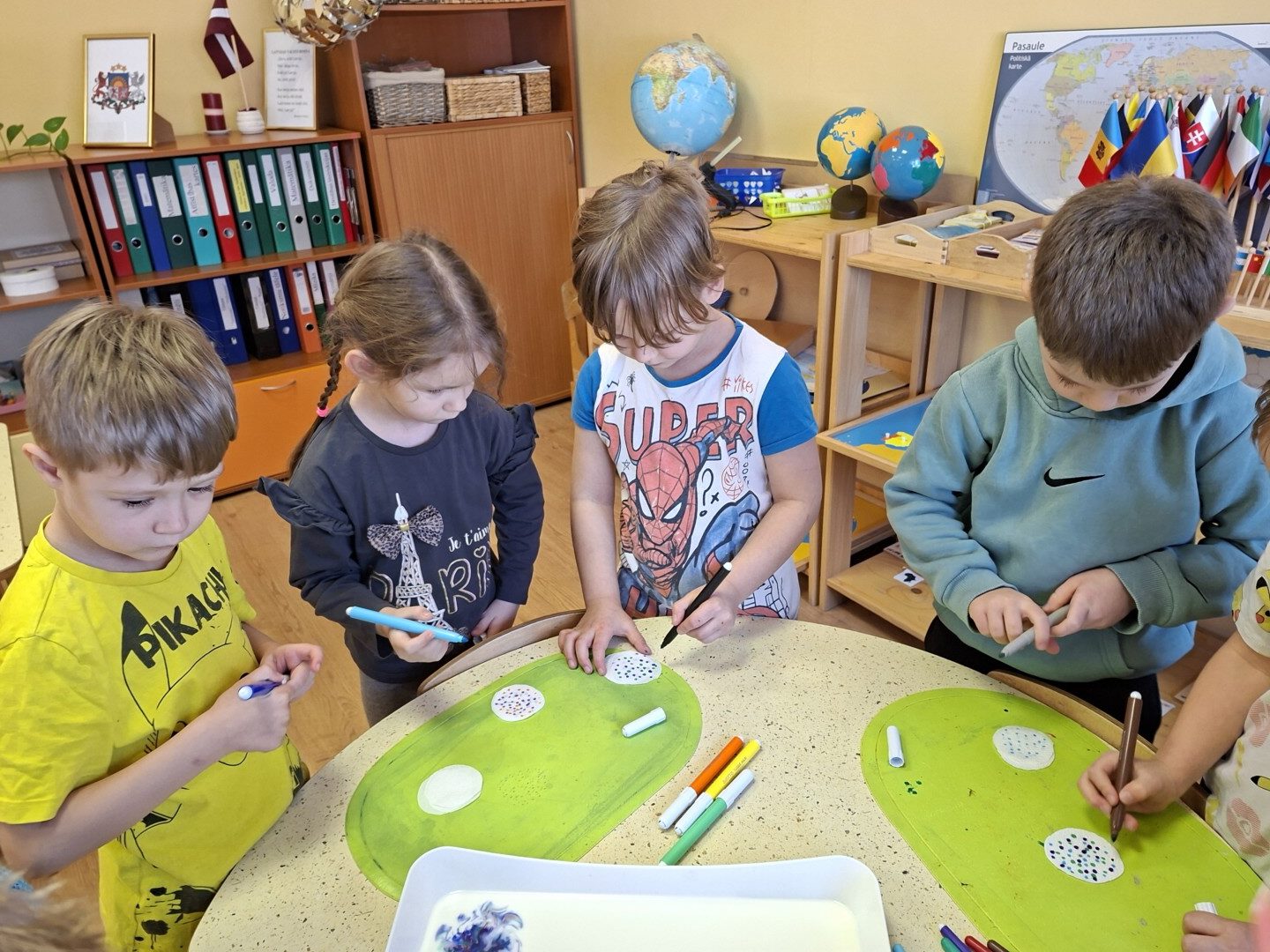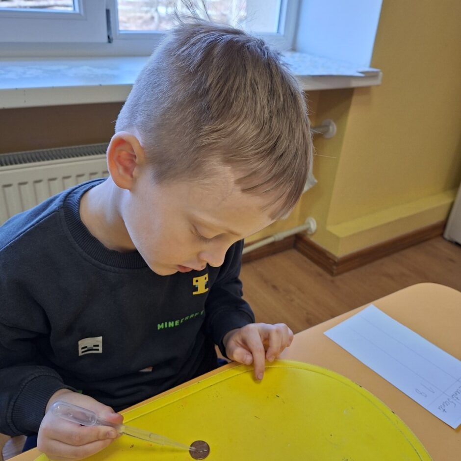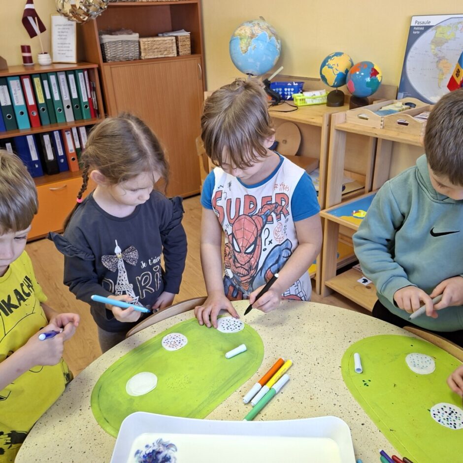 Gan februārī, gan martā grupas “Pūcītes” bērni eksperimentēja ar ūdeni, pienu, krāsām, baloniem un citām lietām, vienlaicīgi trenējot uzmanību, uztveri, pacietību, kā arī attīstīja prasmi prognozēt eksperimentu rezultātus, izteikt savu viedokli un pamatot to.  Kā vienu no interesantākajiem eksperimentiem bērni atzina gleznošanu, kur otas vietā tika izmantoti baloni. Bija liels pārsteigums, ka arī bez otas var gleznot.
