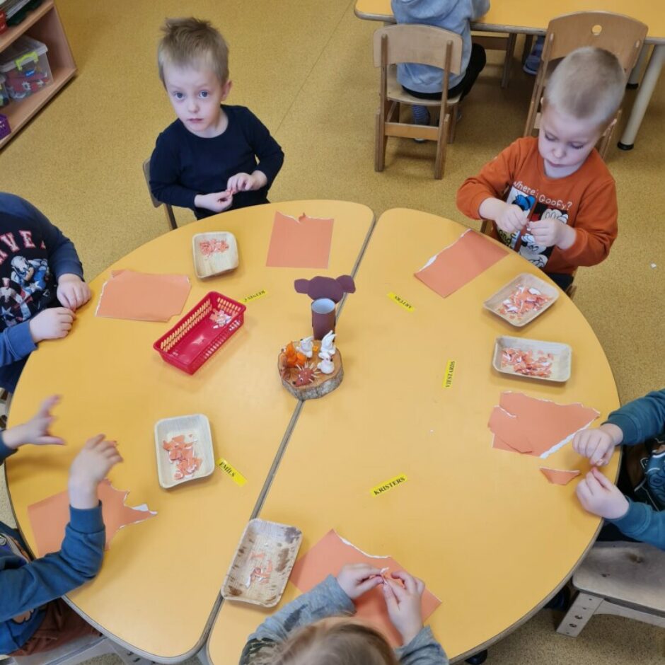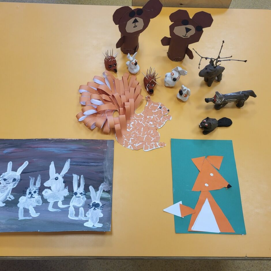 Bērni turpināja iepazīt meža dzīvniekus, viņu izskatu, krāsu un mājvietu. Izmantojot dažādus materiālus, tapa dažādi darbi par apgūstamo tematu.