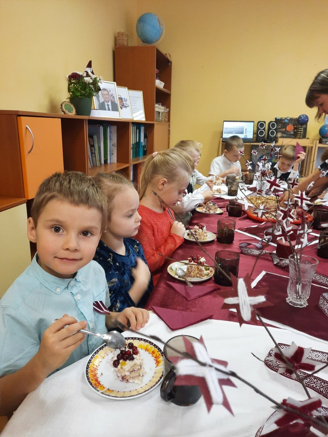 5 – 6 gadīgās grupas bērni ar savu priekšnesumu piedalījās skolas rīkotajā svinīgajā pasākums kopā ar visu klašu skolēniem un skolas darbiniekiem. Šajā dienā bērni apguva prasmi klāt un noformēt svētku galdu atbilstoši tematikai, turpināja apgūt galda kultūru un nogaršoja pašu gatavoto cepumu torti.