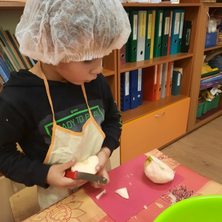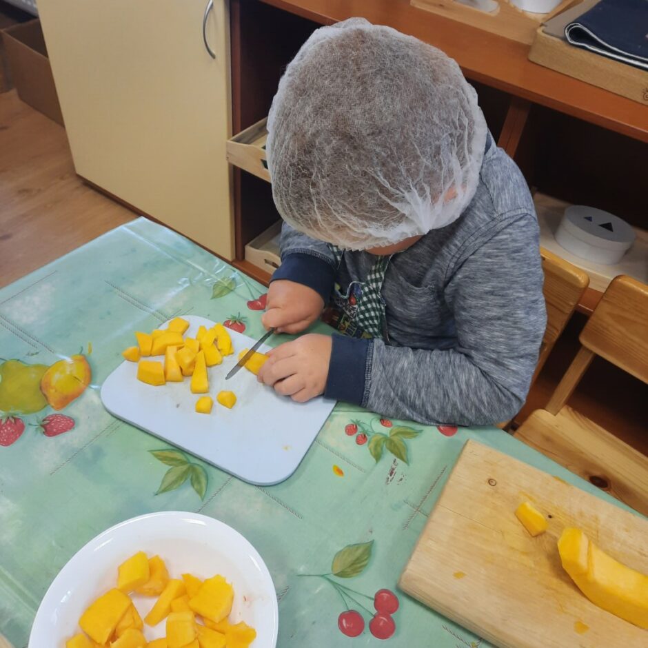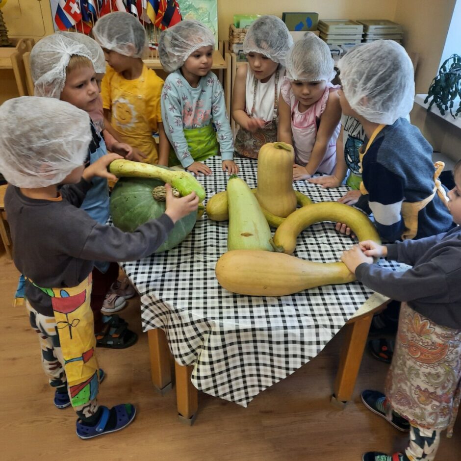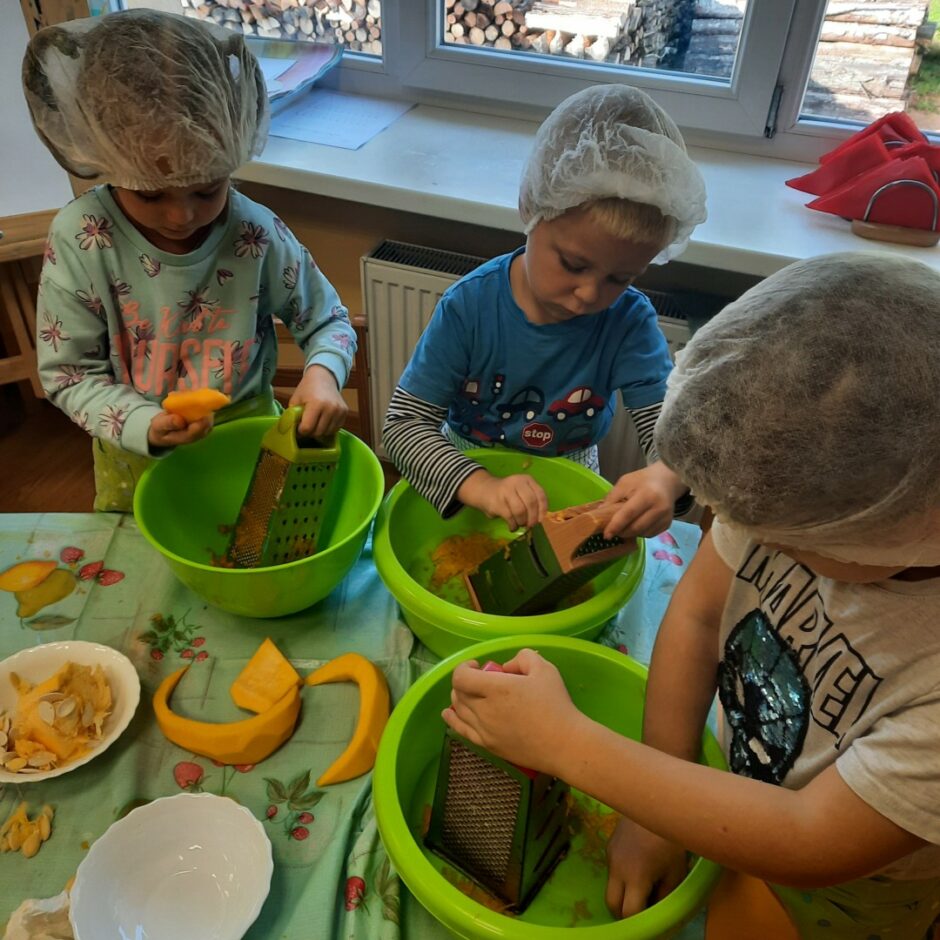 Miķeldienā 5 – 6 gadīgo grupu bērni pētīja un izzināja ķirbjus: salīdzināja tos pēc krāsas, lieluma, formas, svēra ar dažādiem svariem, mērīja to apkārtmēru, pētīja ķirbja uzbūvi un tā sēklas. Tika izspēlētas arī vairākas rotaļas par ķirbi un izdziedātas dziesmas par rudens ražu. Pēc tam nostiprināja praktiskās dzīves prasmes – grieza, rīvēja, spieda sulu. Rezultātā nogaršoja ķirbju veselīgo sulu, pašu gatavotos marinētos ķirbjus un pašu ceptās ķirbju pankūkas. Šajā dienā grupā bija īpaši darbīga atmosfēra, daudz pozitīvu emociju un prieks par paveikto.