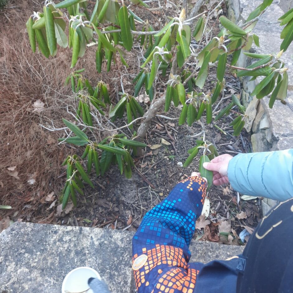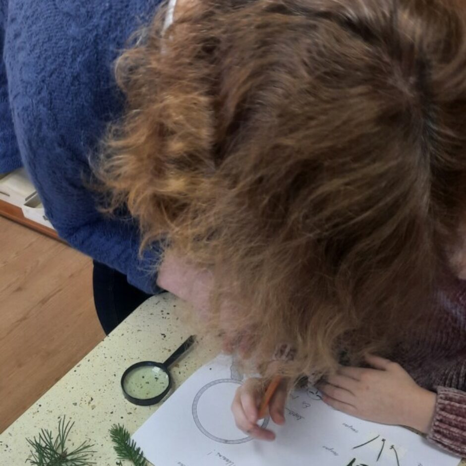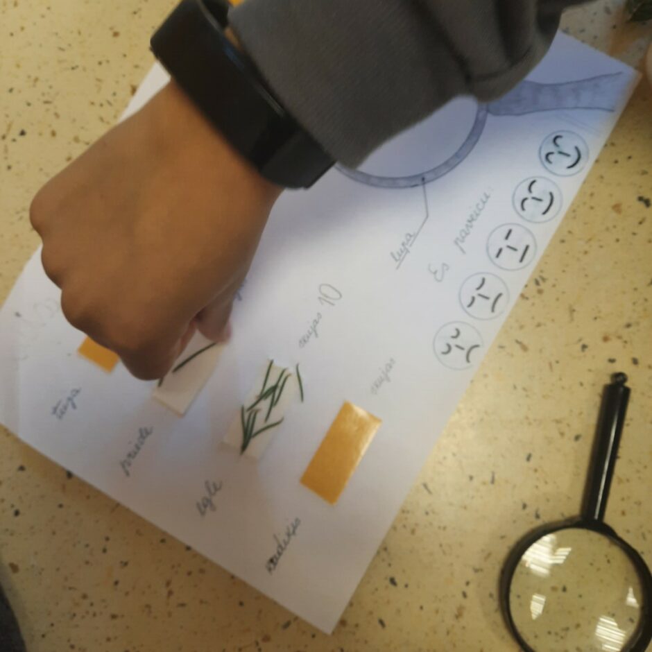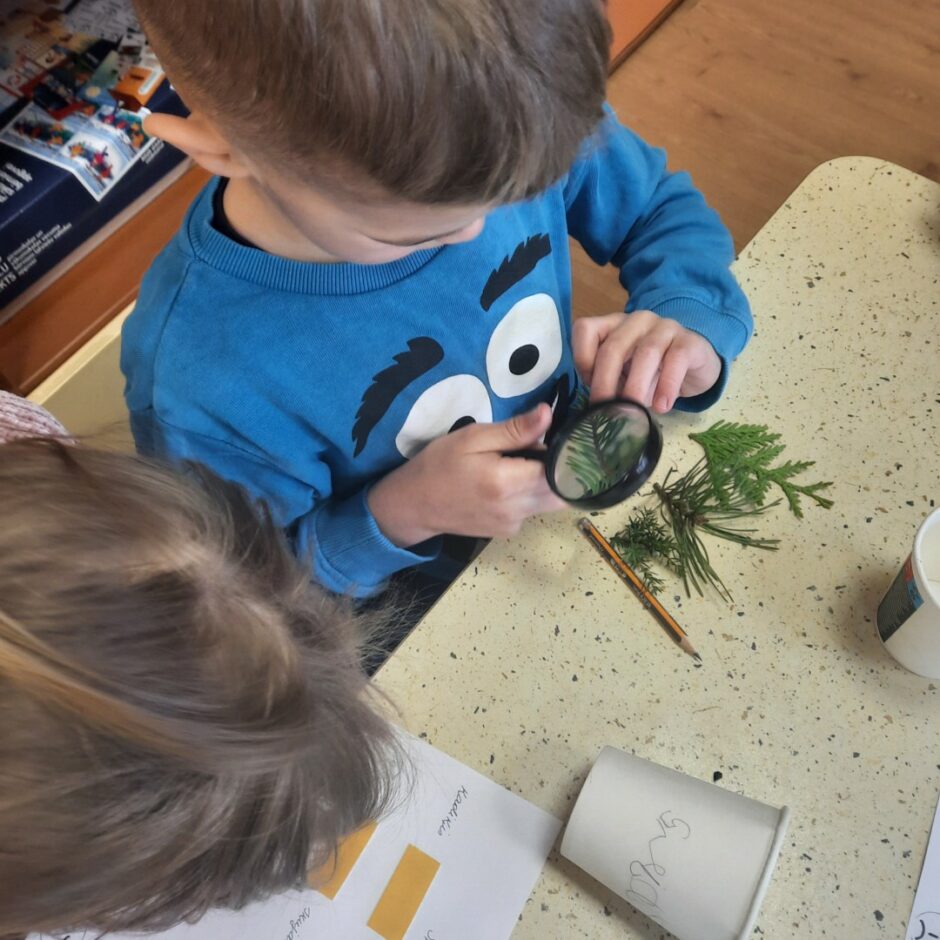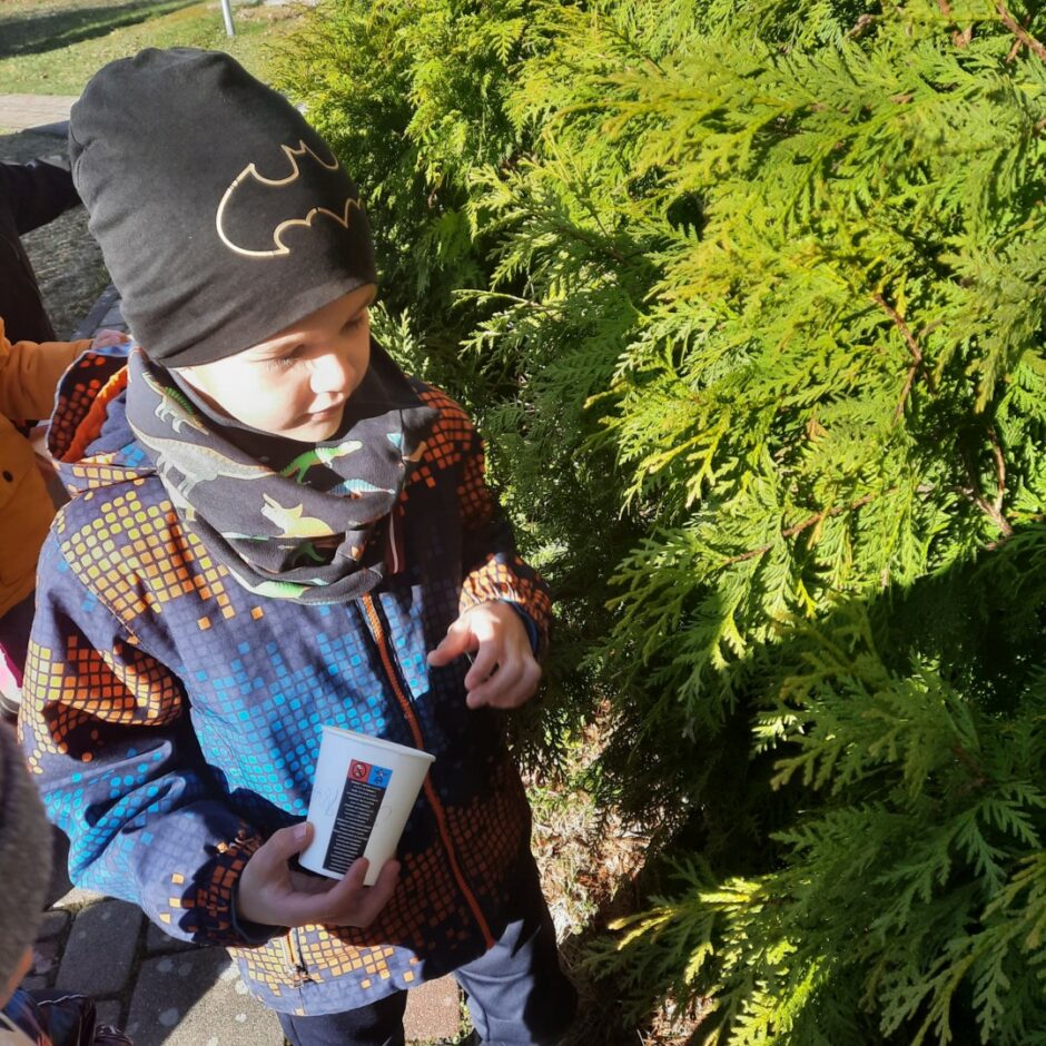 Bērnos lielu interesi un prieku raisīja mūžzaļo augu pētīšana skolas apkārtnē. Bērni atrada un atpazina mūžzaļos augus tuvākajā apkārtnē, bagātināja vārdu krājumu ar mūžzaļo augu nosaukumiem, pētīja un salīdzināja to skujas un lapas. Rotaļnodarbības beigās katrs bērns novērtēja sava darba rezultātu.