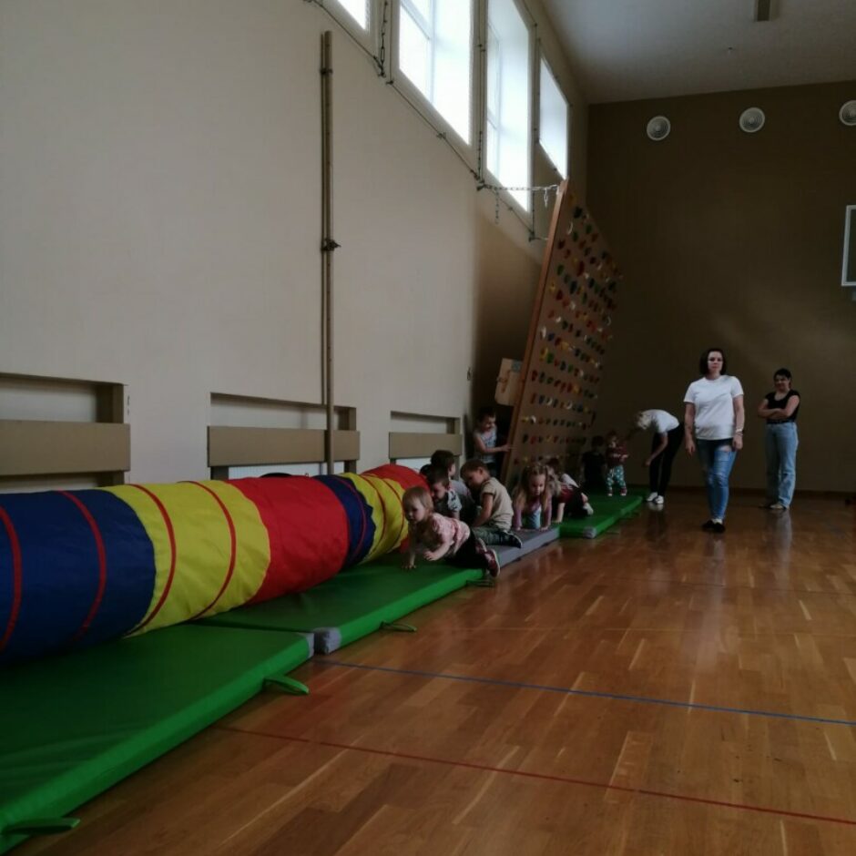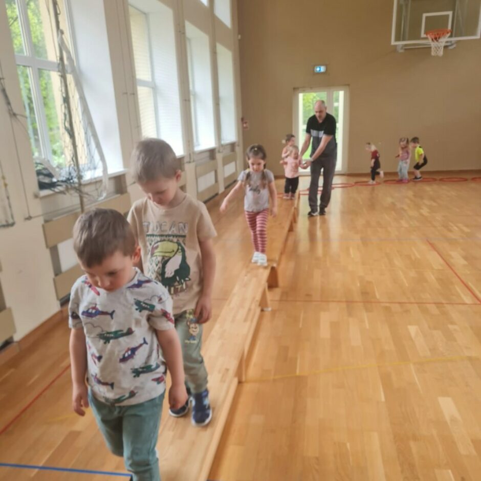 Ar dažādām fiziskām aktivitātēm pirmsskolas vecuma bērni piedalījās Olimpiskajā dienā. Pārvarot dažādas šķēršļu joslas, izkustoties kopīgos vingrojumos un sacenšoties savā starpā, bija jūtams liels prieks un pozitīvas emocijas par paveikto.