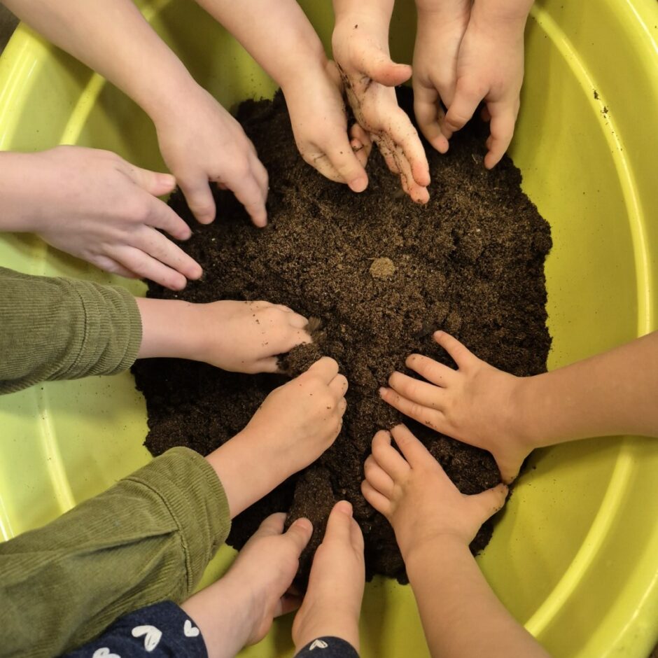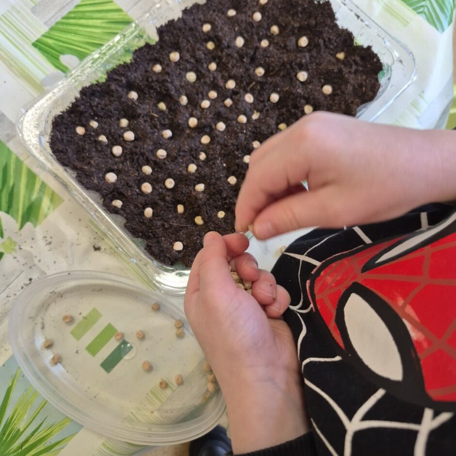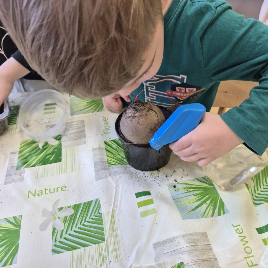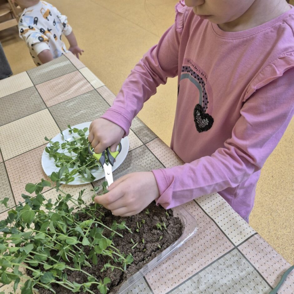 Kā katru gadu, arī šogad pavasaris pirmsskolā iesākās ar sēšanas darbiem. Tika sēti tomāti, gurķi, vasaras puķes, dažādi zaļumi, kā arī stādīti sīpoli, lai izaugušos lokus izmantotu kā vitamīnu avotu. Bērni mācījās atšķirt dažādu augu sēklas, mazākie iepazina augsni, izpētīja tās īpašības. Pašu audzētie gurķu un tomātu stādi tiks iestādīti siltumnīcā, bet puķu stādi augs grupu laukumā, kur visas vasaras garumā puķes priecēs ar skaistiem ziediem.
