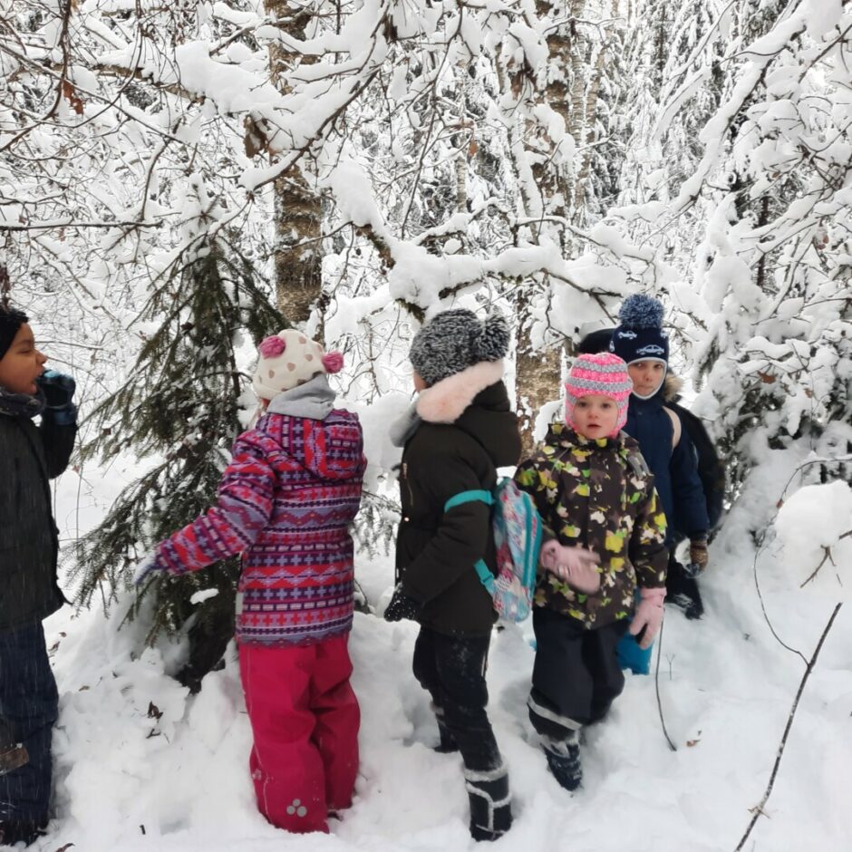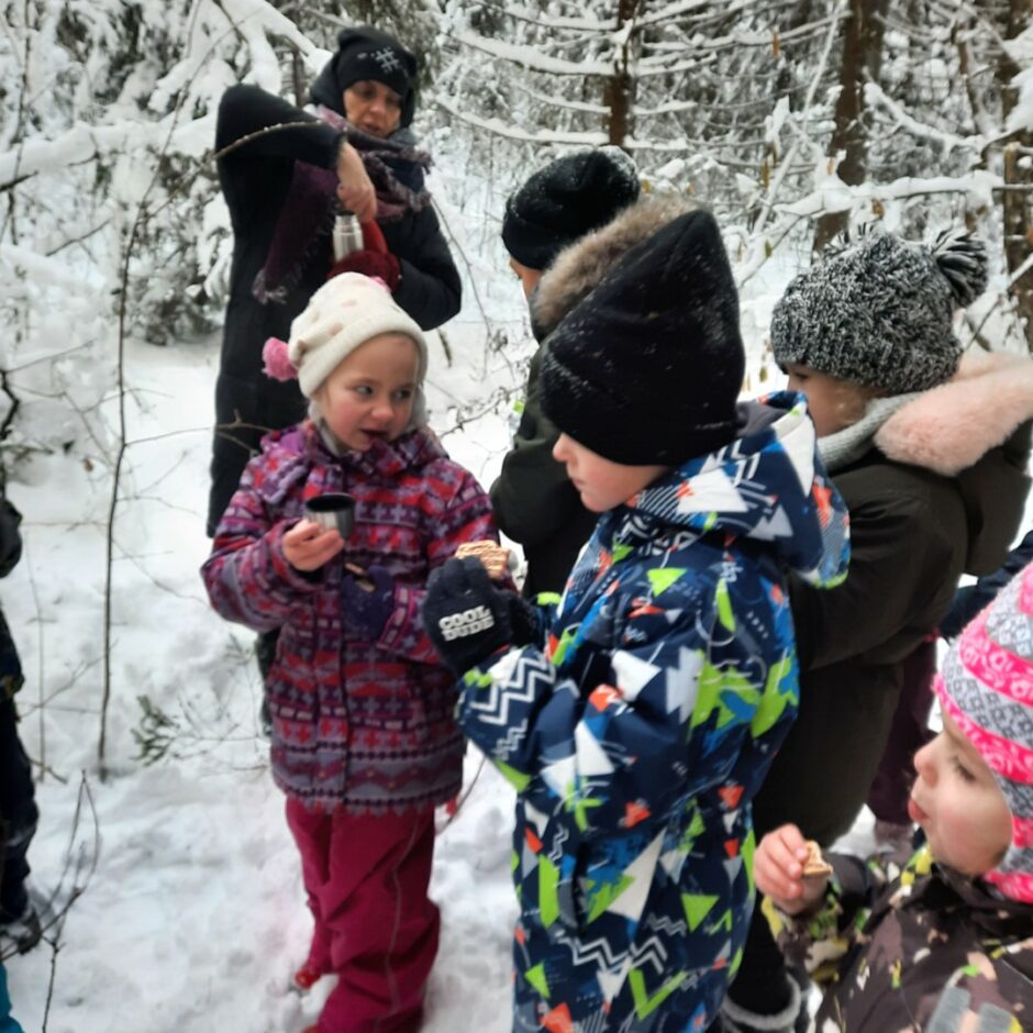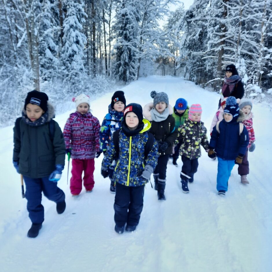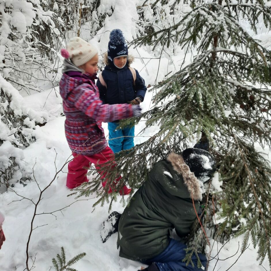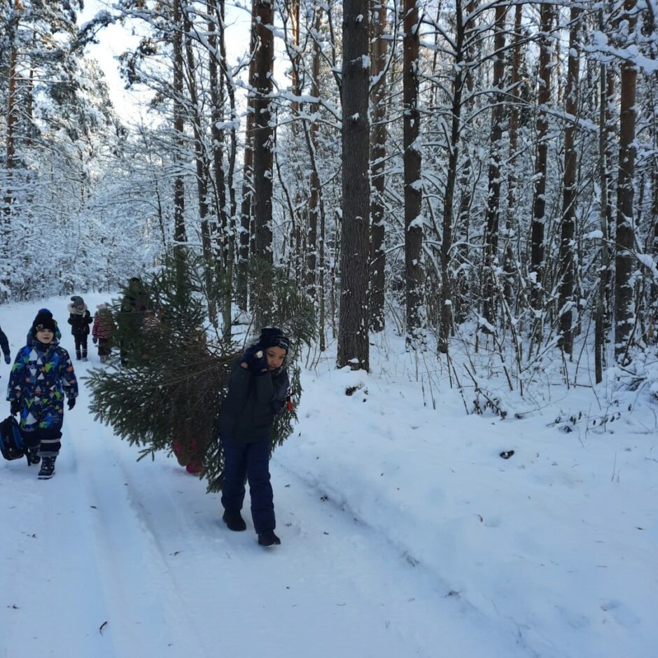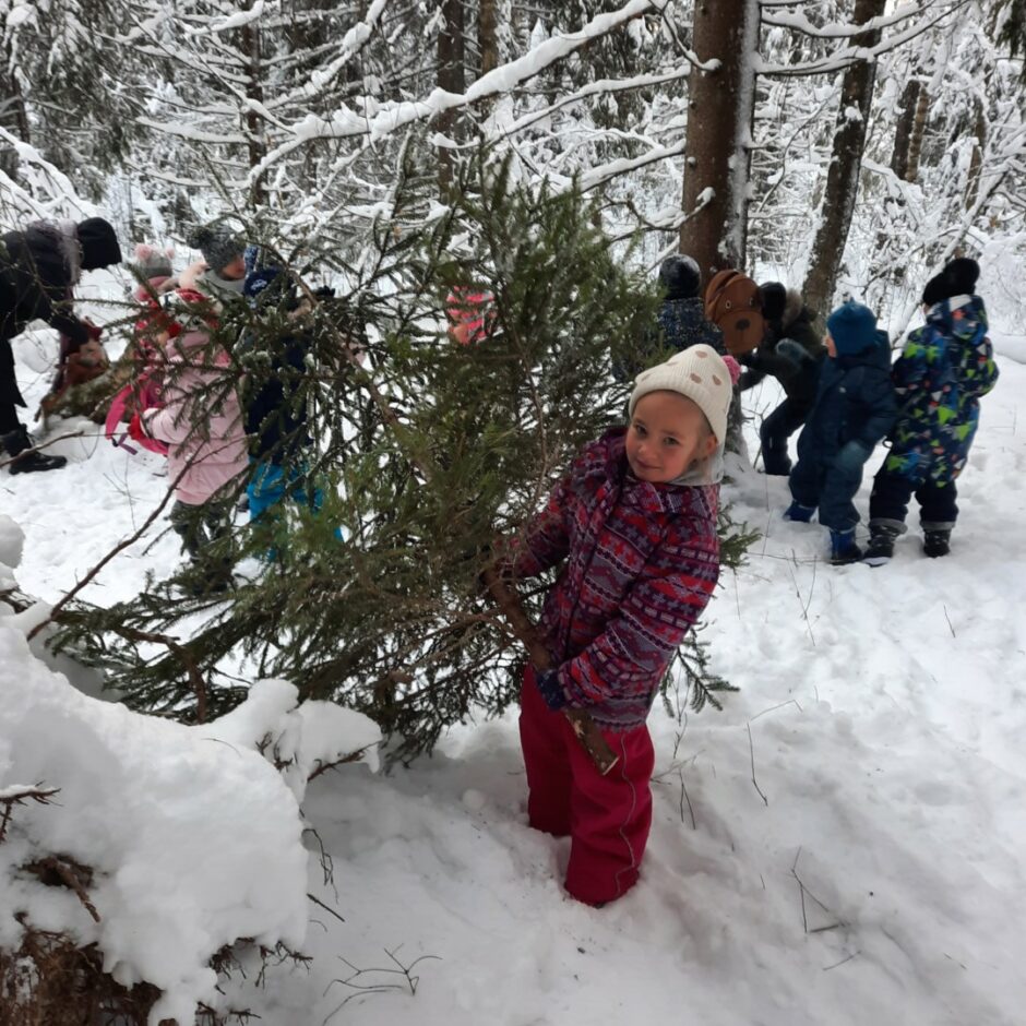 Grupu “Pūcītes” un “Vāverītes” bērni jau trešo gadu devās uz tuvējo mežu pēc Ziemassvētku eglītes. Brienot dziļo sniegu, vērojot meža dzīvnieku pēdas un jautri čalojot, svētku eglīte tika izraudzīta. Tā kā diena bija auksta, tad bērnus sildīja vecāku sarūpētā zāļu tēja un nelielas uzkodas. Tika padomāts arī par meža dzīvniekiem, jo katrs bērns viņiem bija atnesis cienastu.