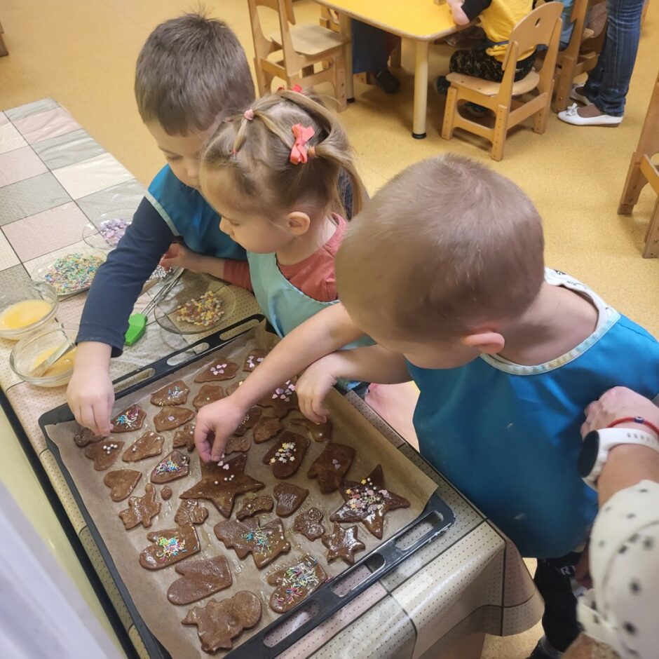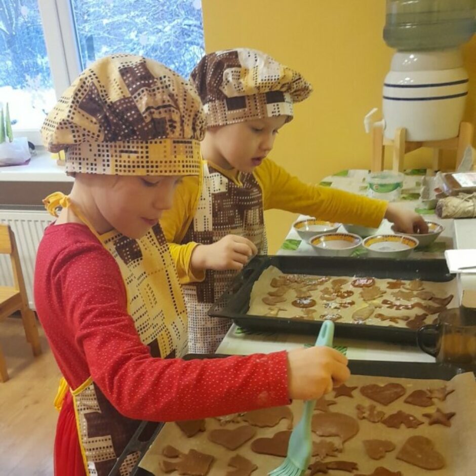 Arī šajā mācību gadā, neilgi pirms Ziemassvētkiem, pirmsskolēni cepa piparkūkas. Bērni nostiprināja prasmi darboties ar piparkūku mīklu – mīcīt, veltnēt, spiest ar dažādām formiņām. Daļa piparkūku tika rotātas ar krāsainiem cukura graudiņiem vai glazūru. Ziemassvētku pasākumā grupās ar pašu ceptajām piparkūkām bērni pacienāja savus vecākus un cienājās paši.
