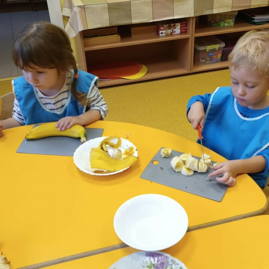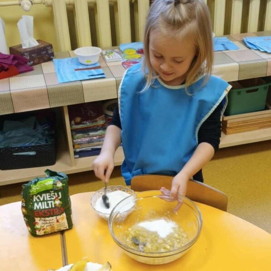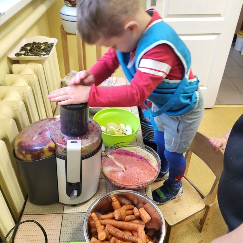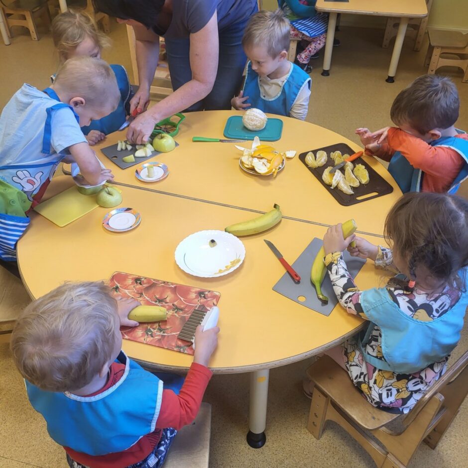 Rudenī bērni no grupām “Taurenīši” un “Ežuki” apguva un nostiprināja prasmes augļu un dārzeņu mazgāšanā, mizošanā, griešanā un dažādu salātu pagatavošanā. Vienlaicīgi pārrunājot veselīga uztura pamatus. Bērniem bija iespēja spiest dārzeņu un augļu sulas, salīdzināt tās pēc izskata, krāsas un garšas. Tāpat tika apgūta prasme kārtot vāzē dažādus rudens ziedus. Apgūstot praktiskās dzīves pamatus, bērni bagātināja vārdu krājumu, vingrināja stāstītprasmi un apguva matemātikas jēdzienus.