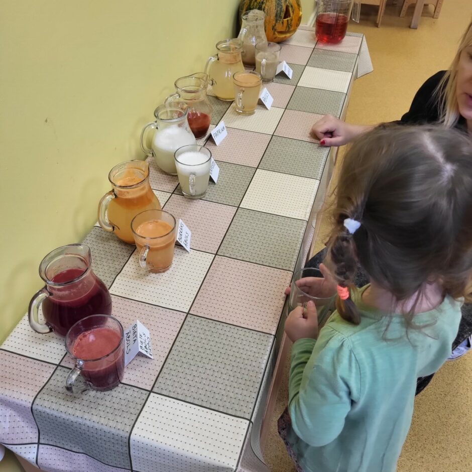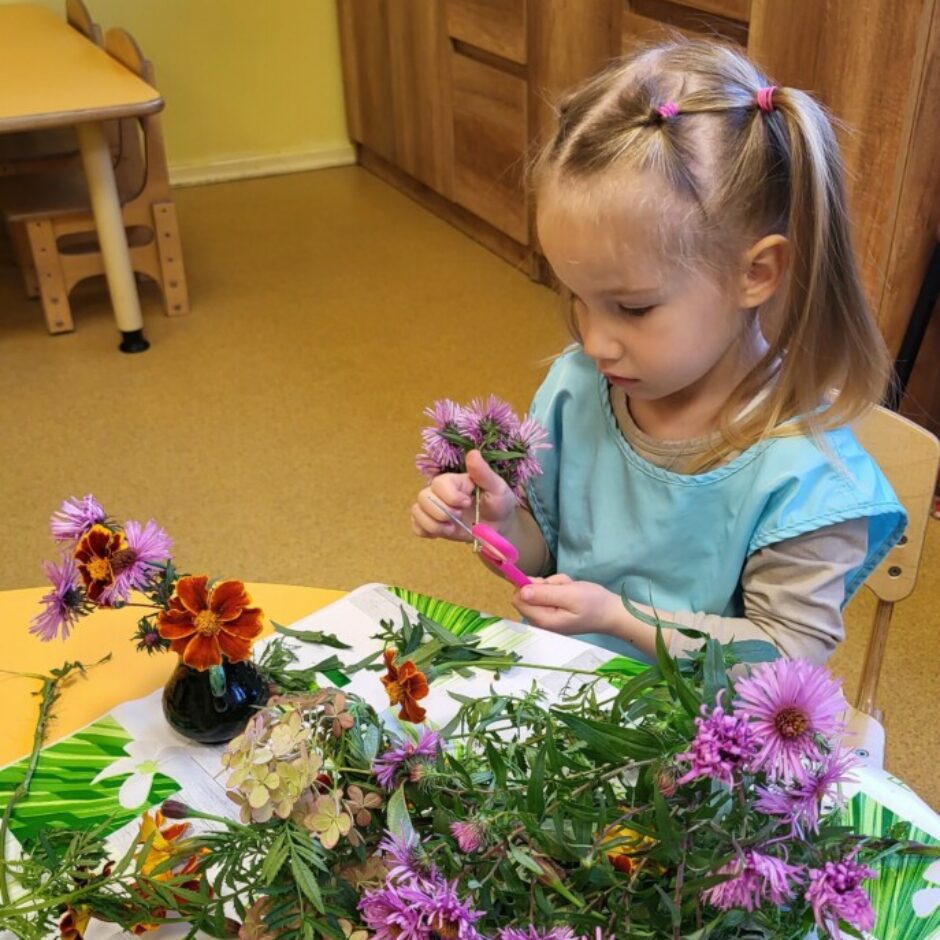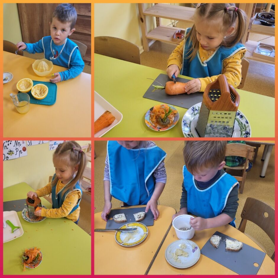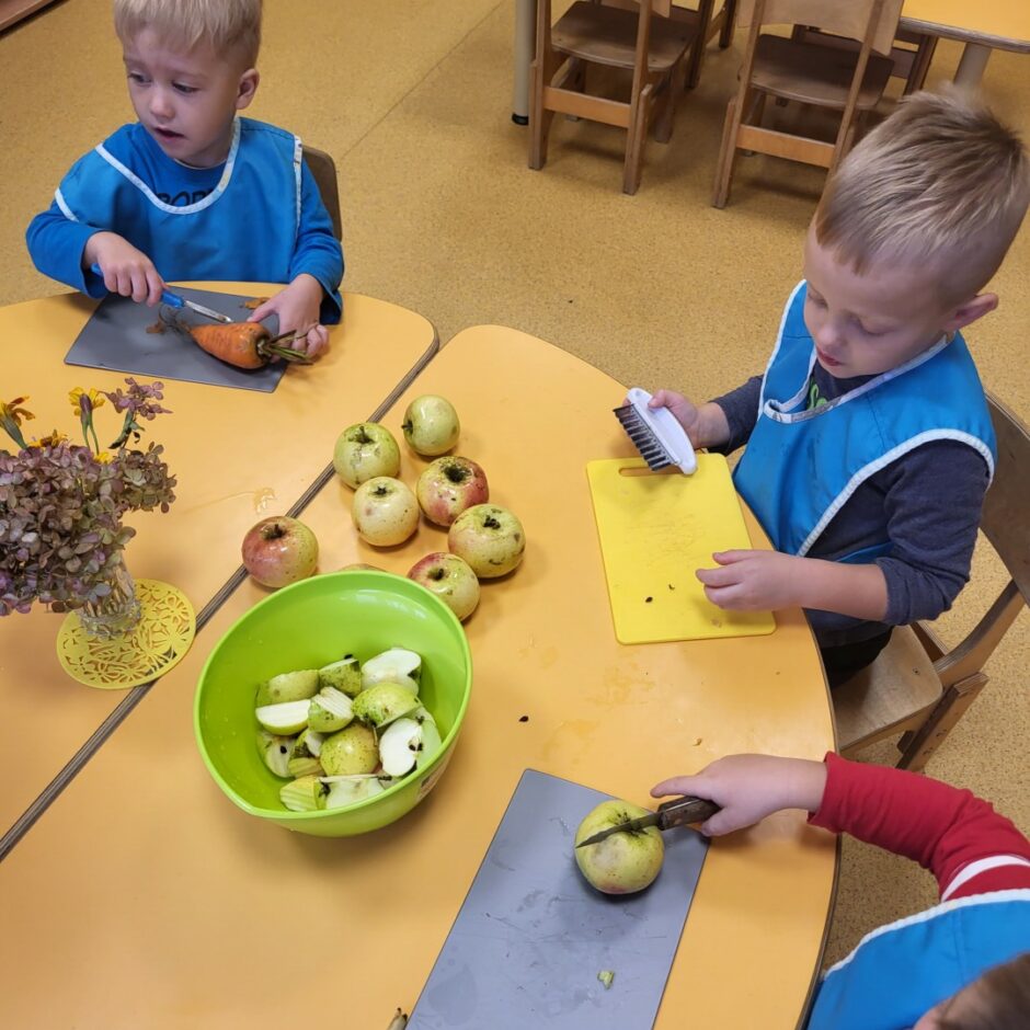 Rudenī bērni no grupām “Taurenīši” un “Ežuki” apguva un nostiprināja prasmes augļu un dārzeņu mazgāšanā, mizošanā, griešanā un dažādu salātu pagatavošanā. Vienlaicīgi pārrunājot veselīga uztura pamatus. Bērniem bija iespēja spiest dārzeņu un augļu sulas, salīdzināt tās pēc izskata, krāsas un garšas. Tāpat tika apgūta prasme kārtot vāzē dažādus rudens ziedus. Apgūstot praktiskās dzīves pamatus, bērni bagātināja vārdu krājumu, vingrināja stāstītprasmi un apguva matemātikas jēdzienus.