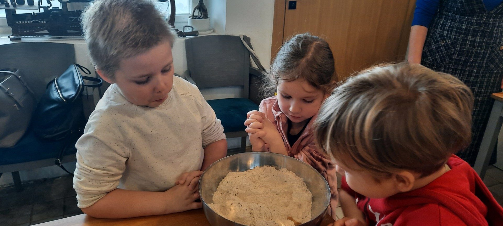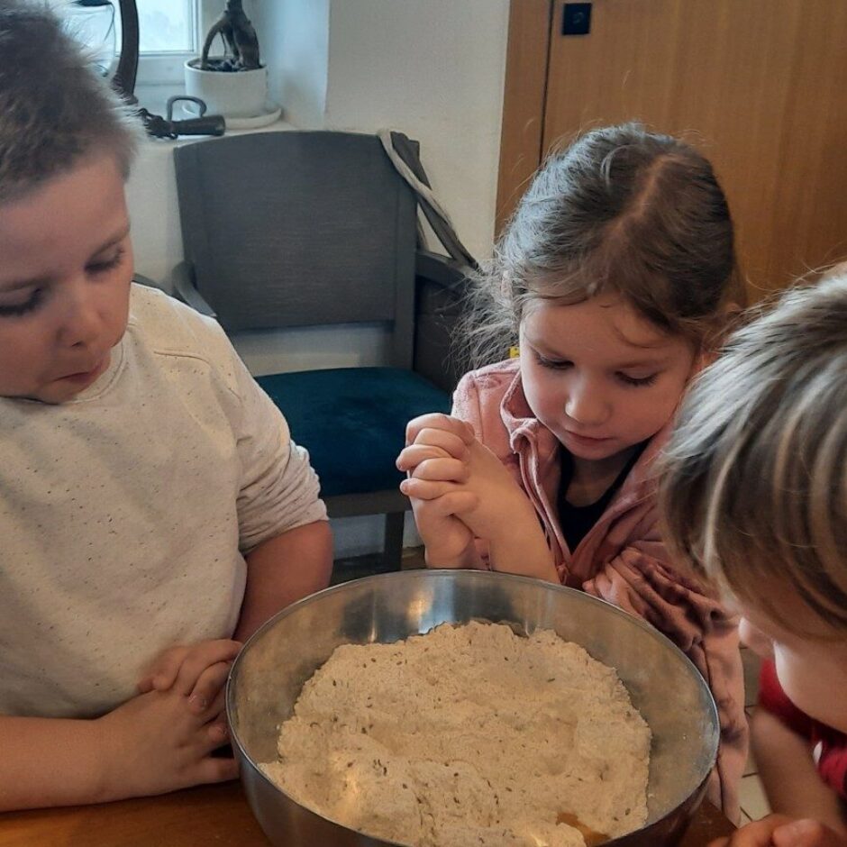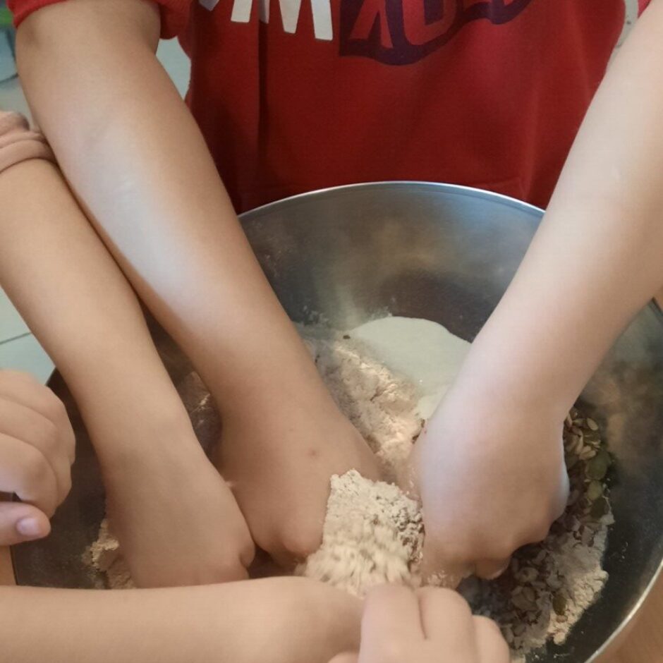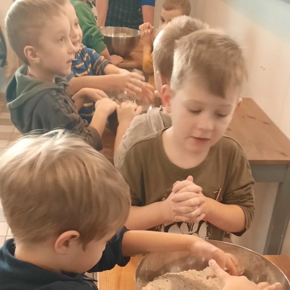 Novembrī grupas “Pūcītes” izglītojamie un grupas darbinieki devās ekskursijā uz ražotni “Grauda spēks”, kur bērni iepazinās ar labību, miltiem, maizes veidiem un maizes cepšanas procesu. Arī pašiem bērniem tika dota iespēja samīcīt mīklu un izcept katram savu maizes kukulīti, kuru, skaisti iesaiņotu, varēja aiznest mājās. Lai pasākums būtu jautrāks, bērni izspēlēja dažādas spēles, kas saistītas ar maizes tapšanas procesu.