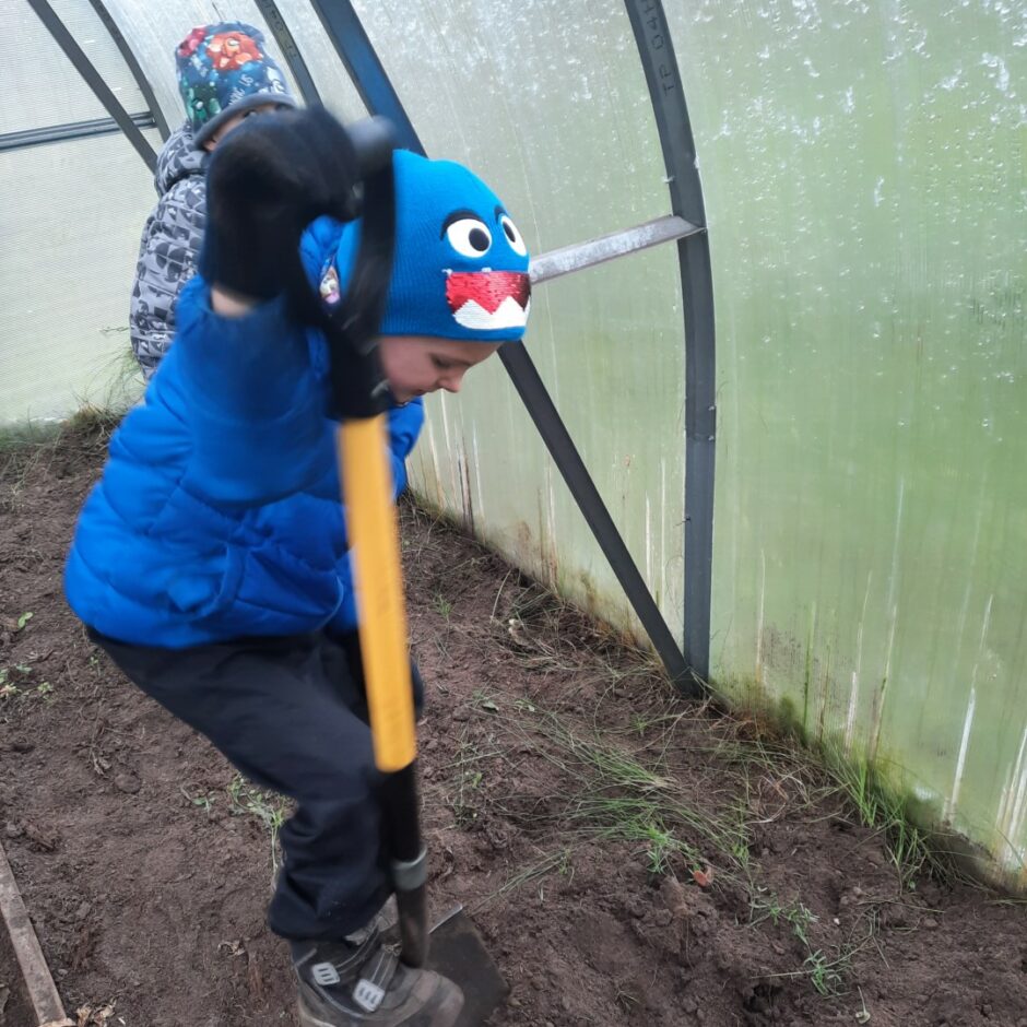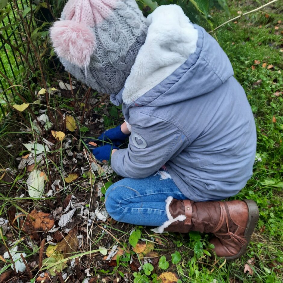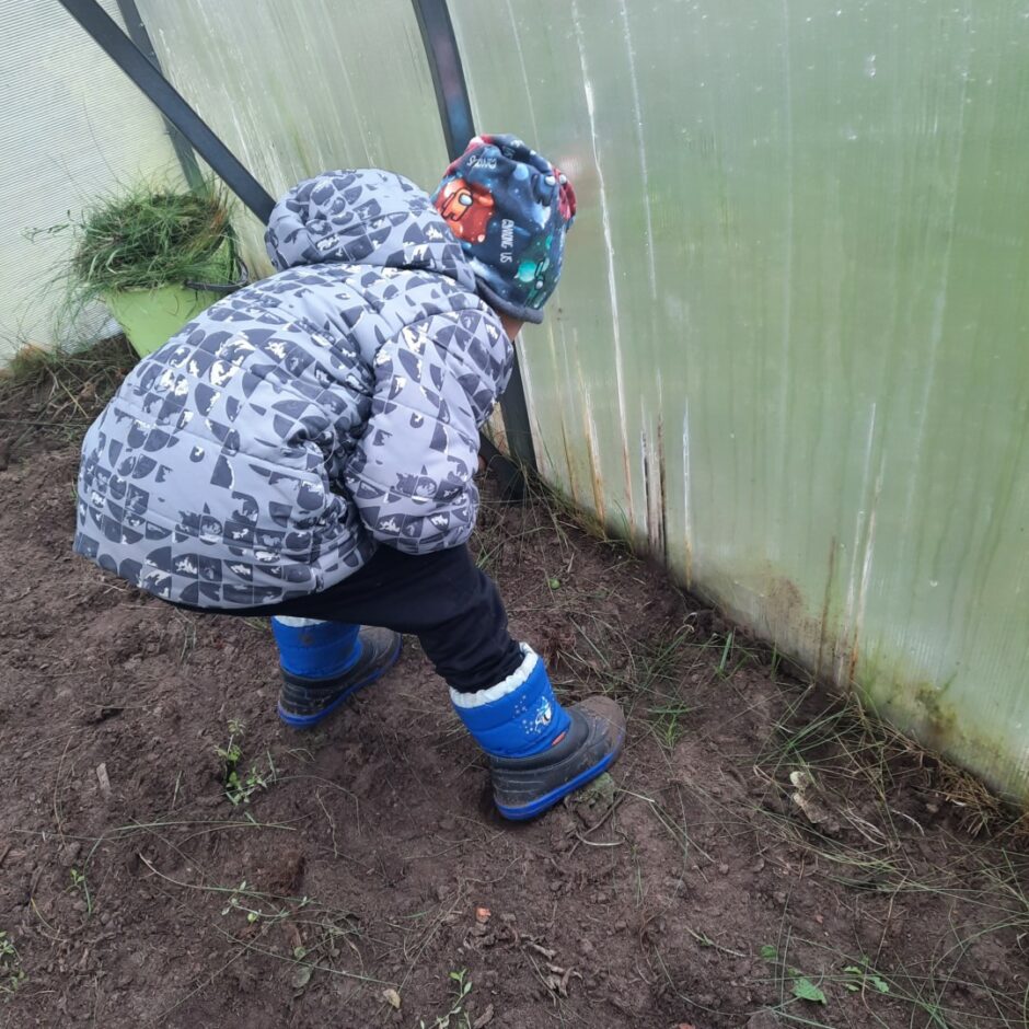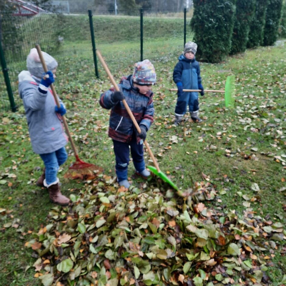 Grupu “Vāverītes” un “Pūcītes” bērni rudenī iesaistījās grupas laukuma sakopšanas darbos – apgrieza noziedējušās puķes, regulāri grāba lapas, veda un nesa tās lapām paredzētajā vietā. Arī siltumnīca tika pakāpeniski sagatavota ziemas sezonai, lai pavasarī tajā atkal varētu sēt un stādīt.