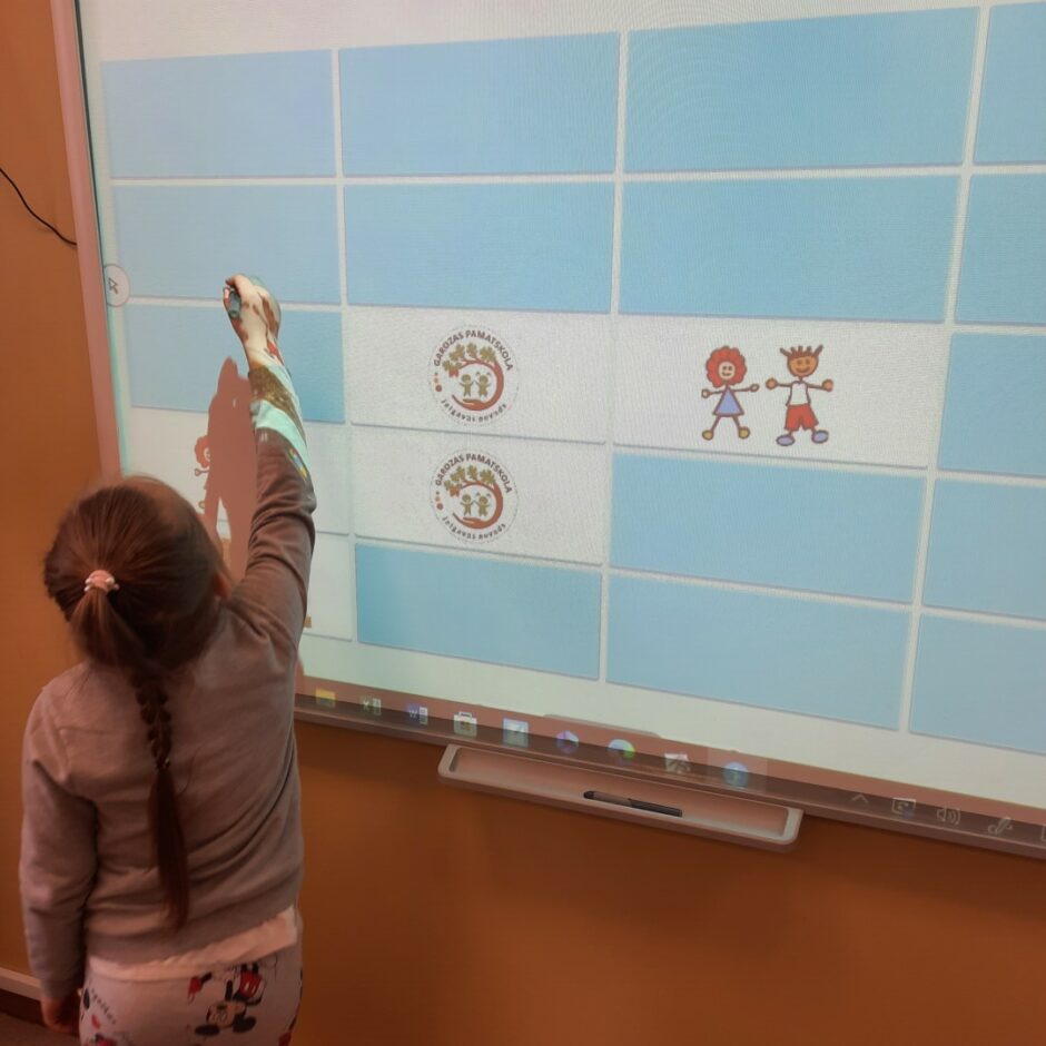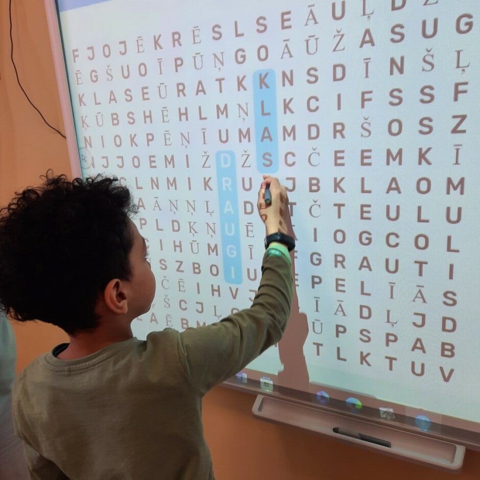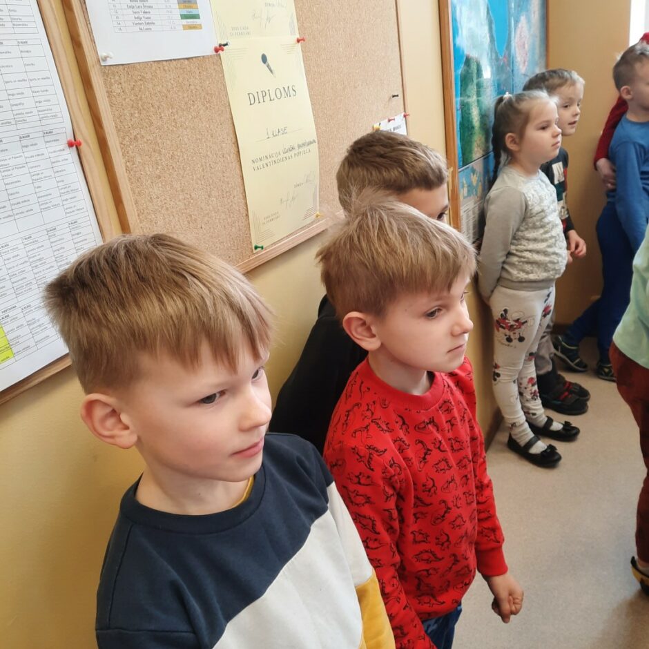 Pēc tam topošie pirmklasnieki kopā ar grupas skolotājām devās vērot latviešu valodas stundu pie 1.klases skolēniem un skolotājas. Skolotāja Laura arī sešgadniekiem bija sagatavojusi uzdevumus latviešu valodā, ko bērni veica ar interesi un lielu atbildību.